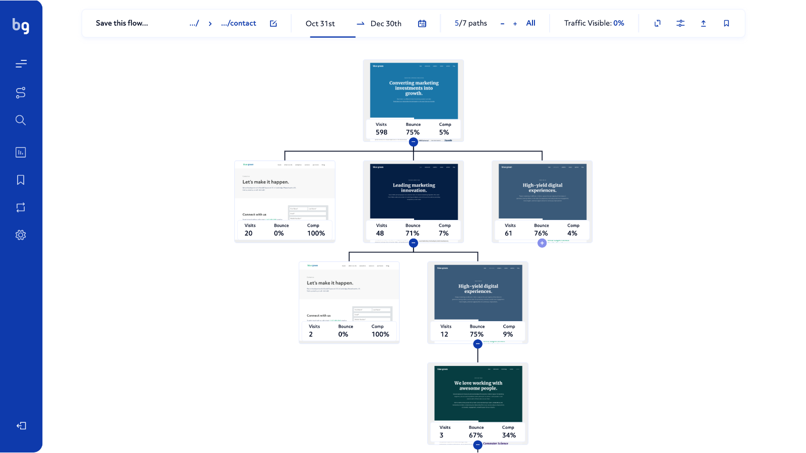 Take a visual-first approach to see and understand how your contacts are engaging, converting, bouncing, and where the opportunities exist for significant yield improvement.