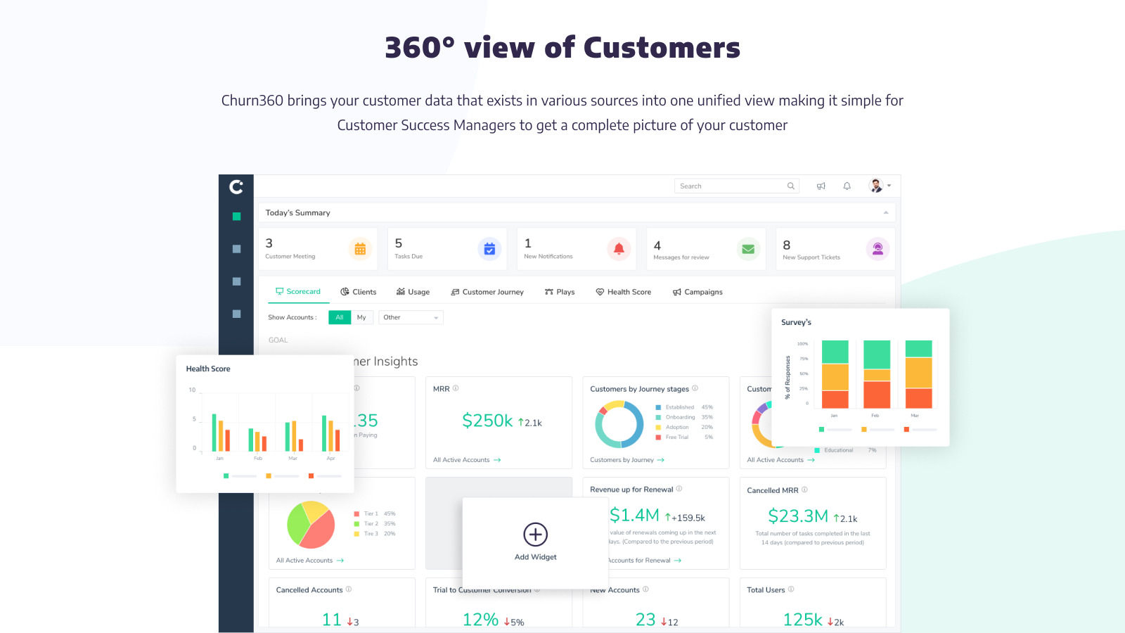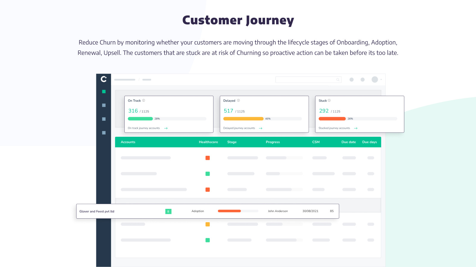 - Brings in all the customer data across different platform in a single view, empowering the customer success to be proactive.