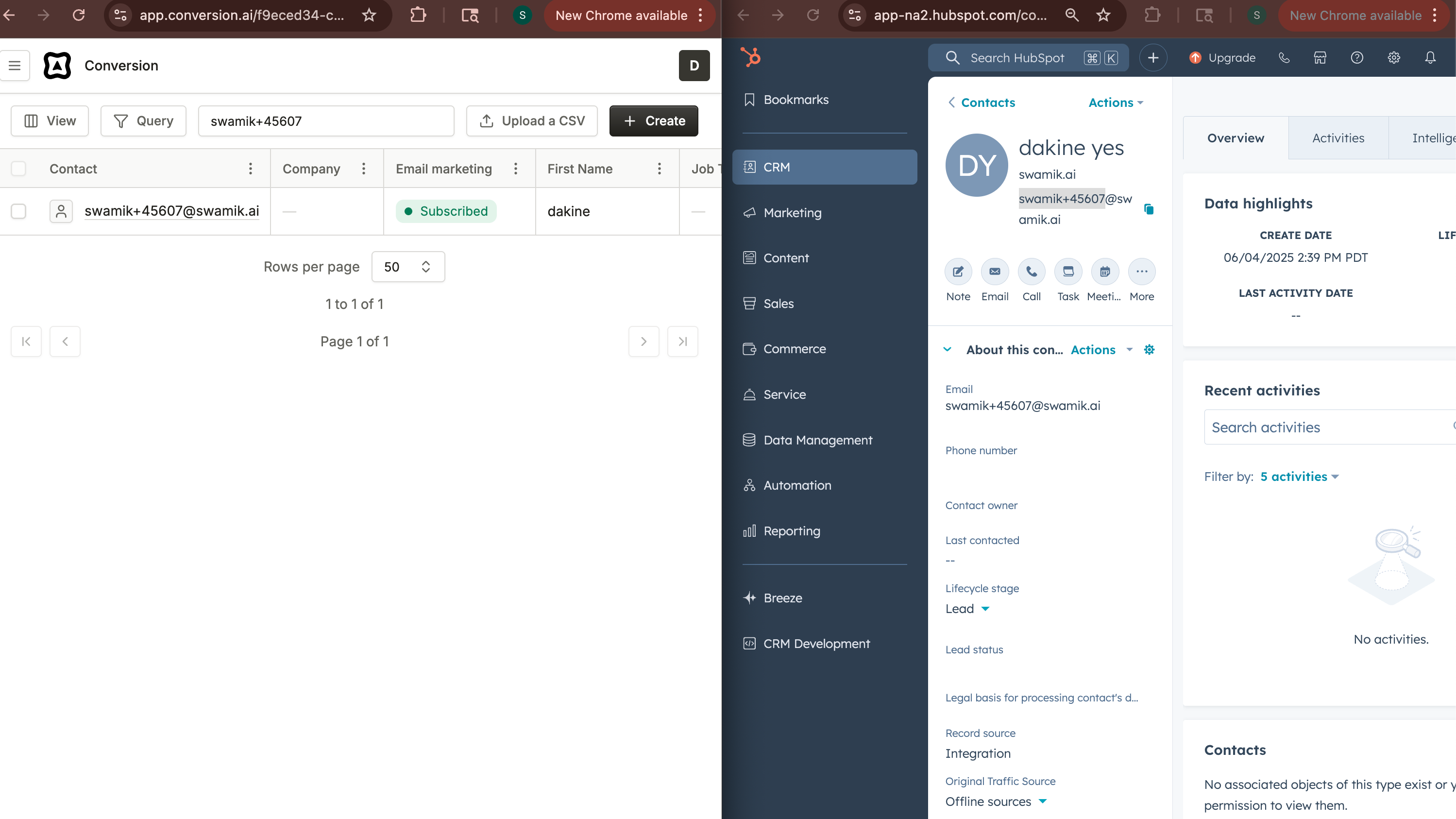 Easily view, create, and update your core HubSpot CRM objects—including Contacts, Companies, and Deals—directly within Conversion.ai. This secure integration ensures consistent, up-to-date data across platforms, simplifying data management and keeping your CRM accurate and synchronized at all times.