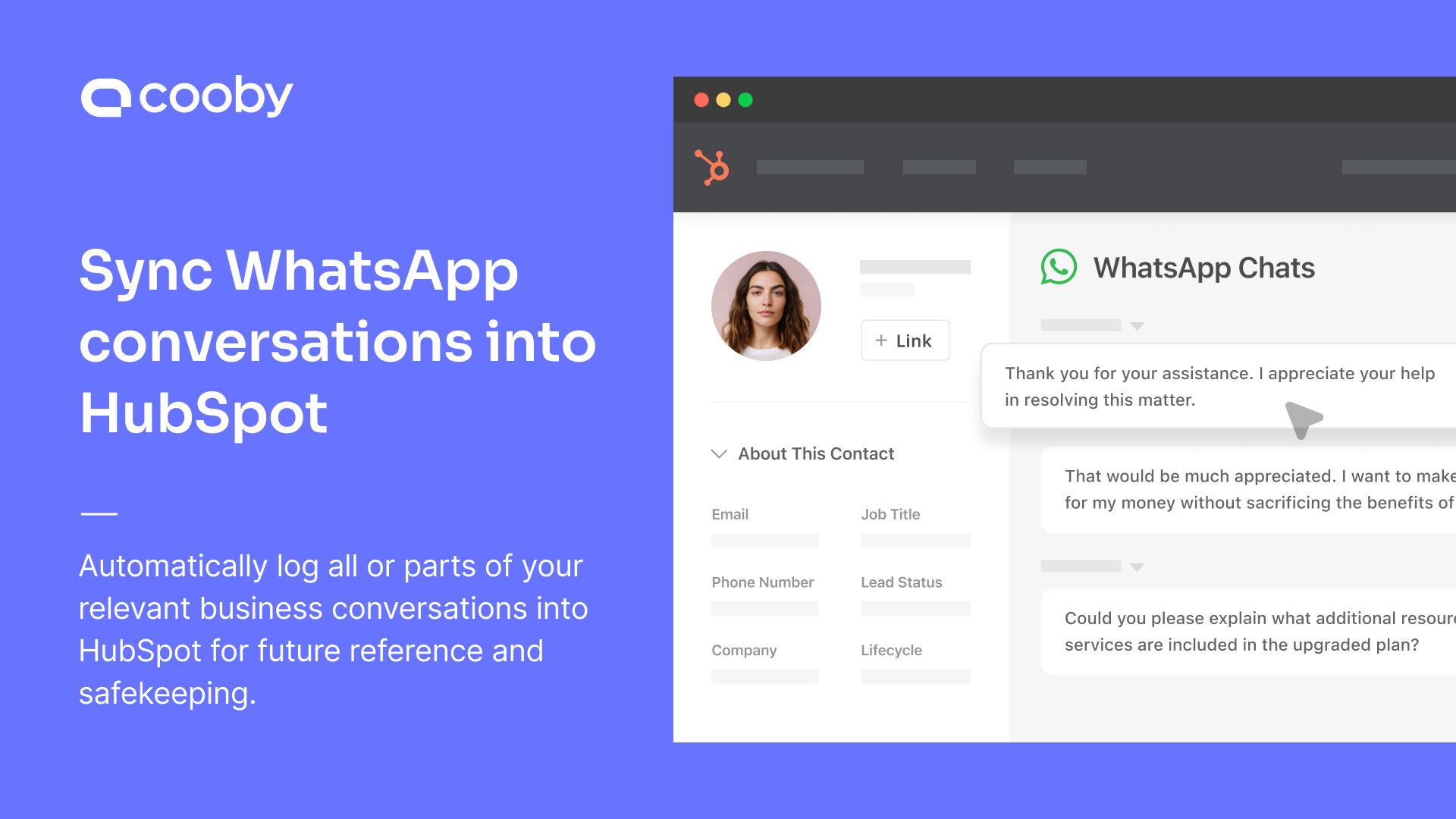 Bring HubSpot to your WhatsApp with Cooby's WhatsApp integration.