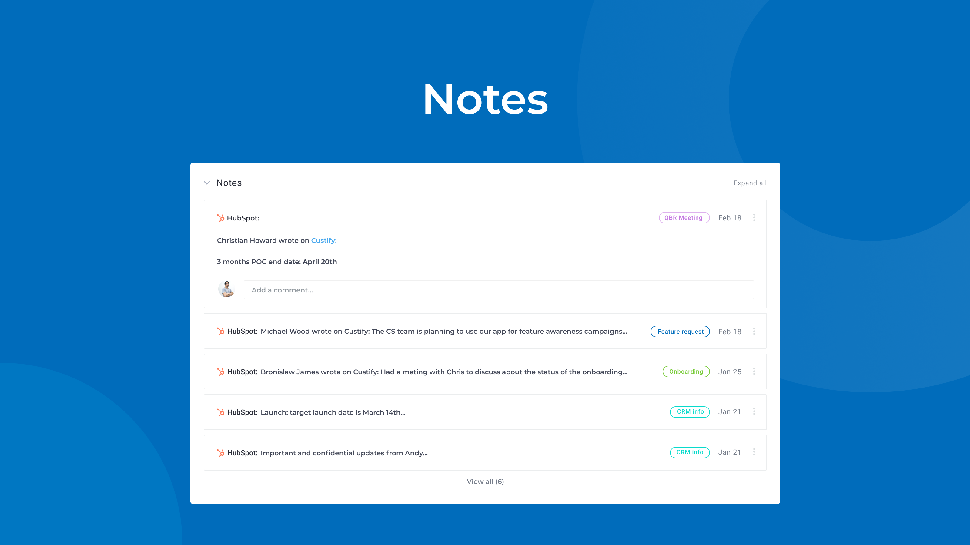 Keep notes from your CSMs and sales team in sync.