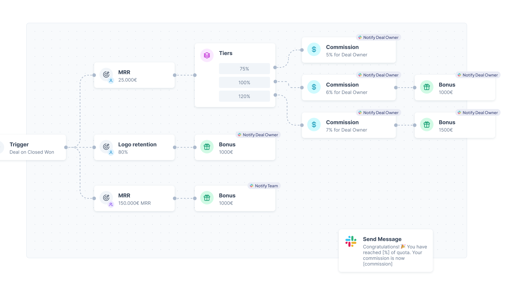 Bridge the gap between CRM efficiency and sales motivation by integrating directly with HubSpot, streamlining the sales process like never before. With Dolfin, users can effortlessly bring their deals into a comprehensive grid view, where the magic of automation takes over to calculate and display the compensation for each deal in real-time.
