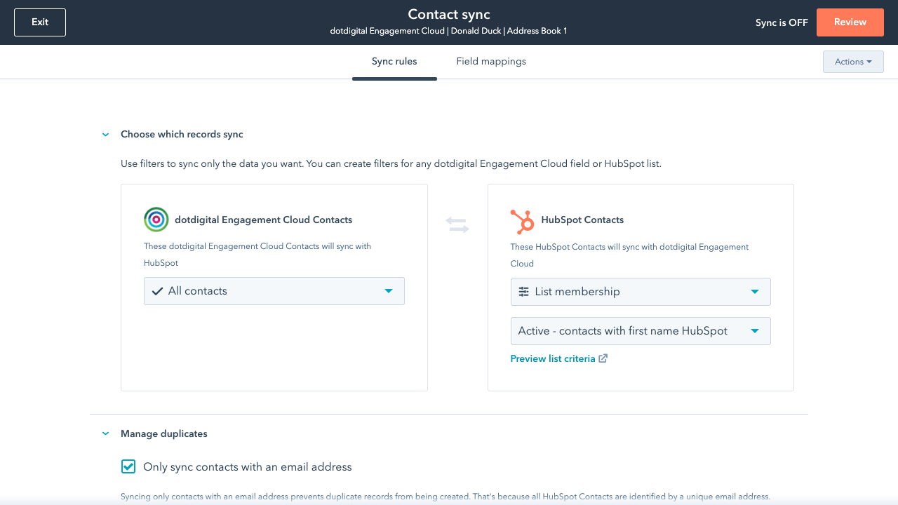 - Two-way sync: Data is shared between dotdigital Engagement Cloud and HubSpot in real time