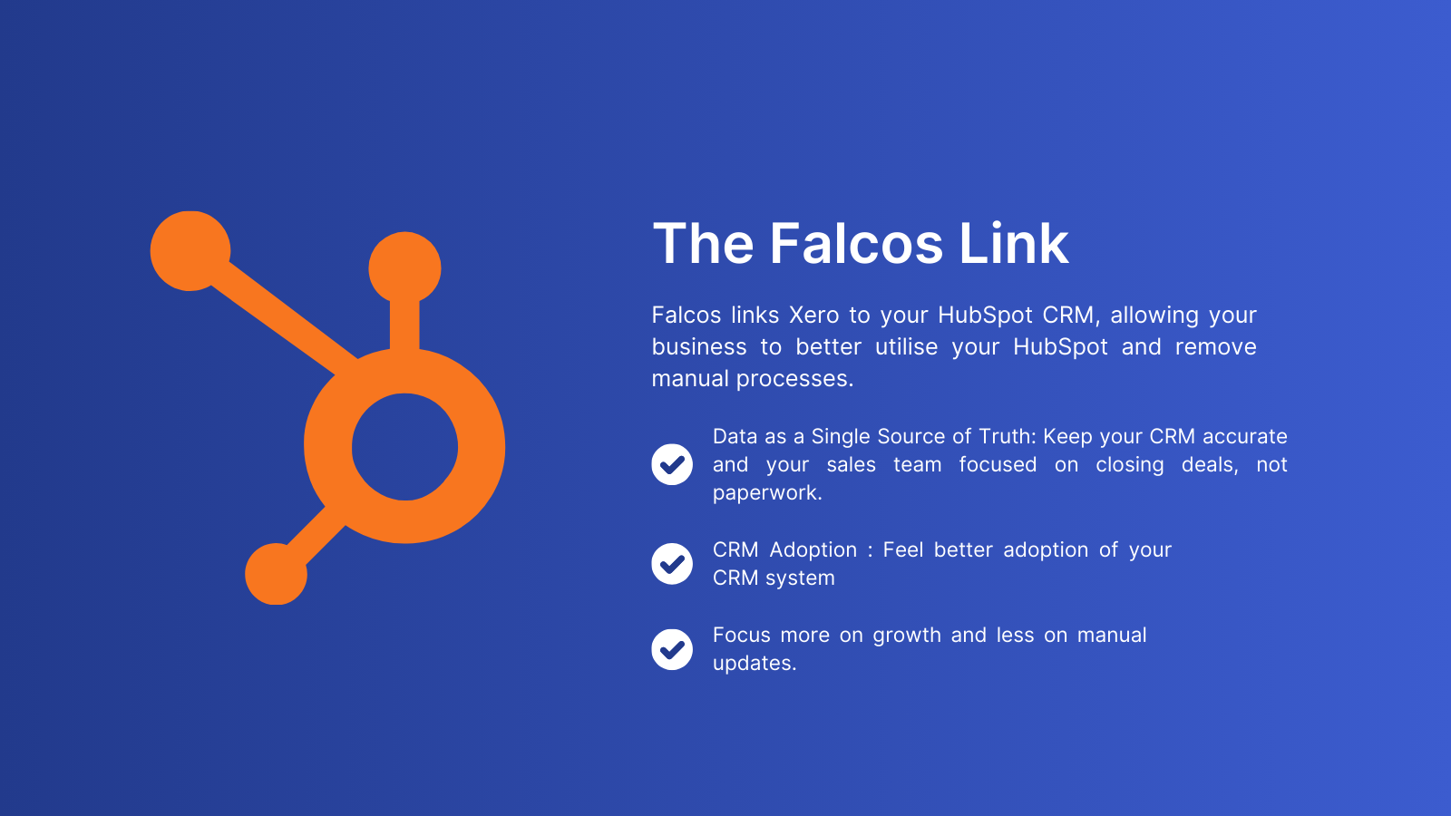 Falcos is a flexible middleware solution that connects your HubSpot CRM to leading finance and payment tools—like Xero and Stripe—without complicated workarounds.