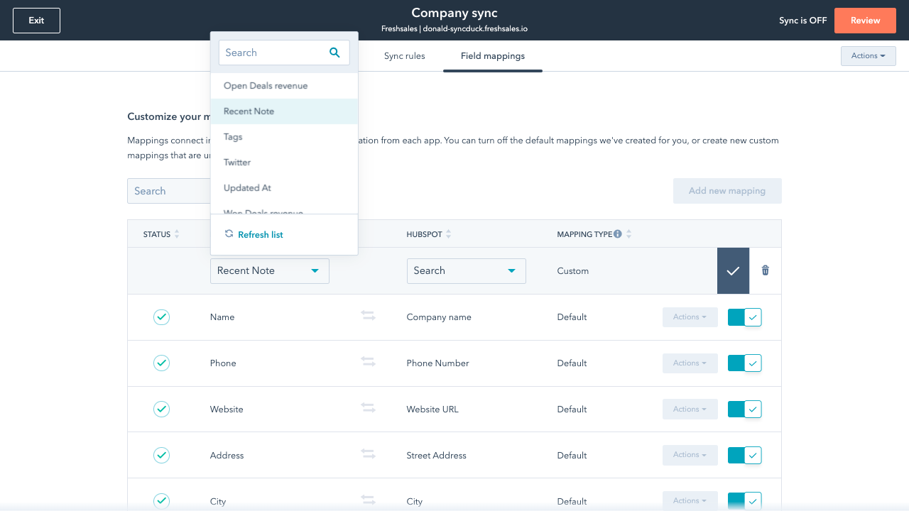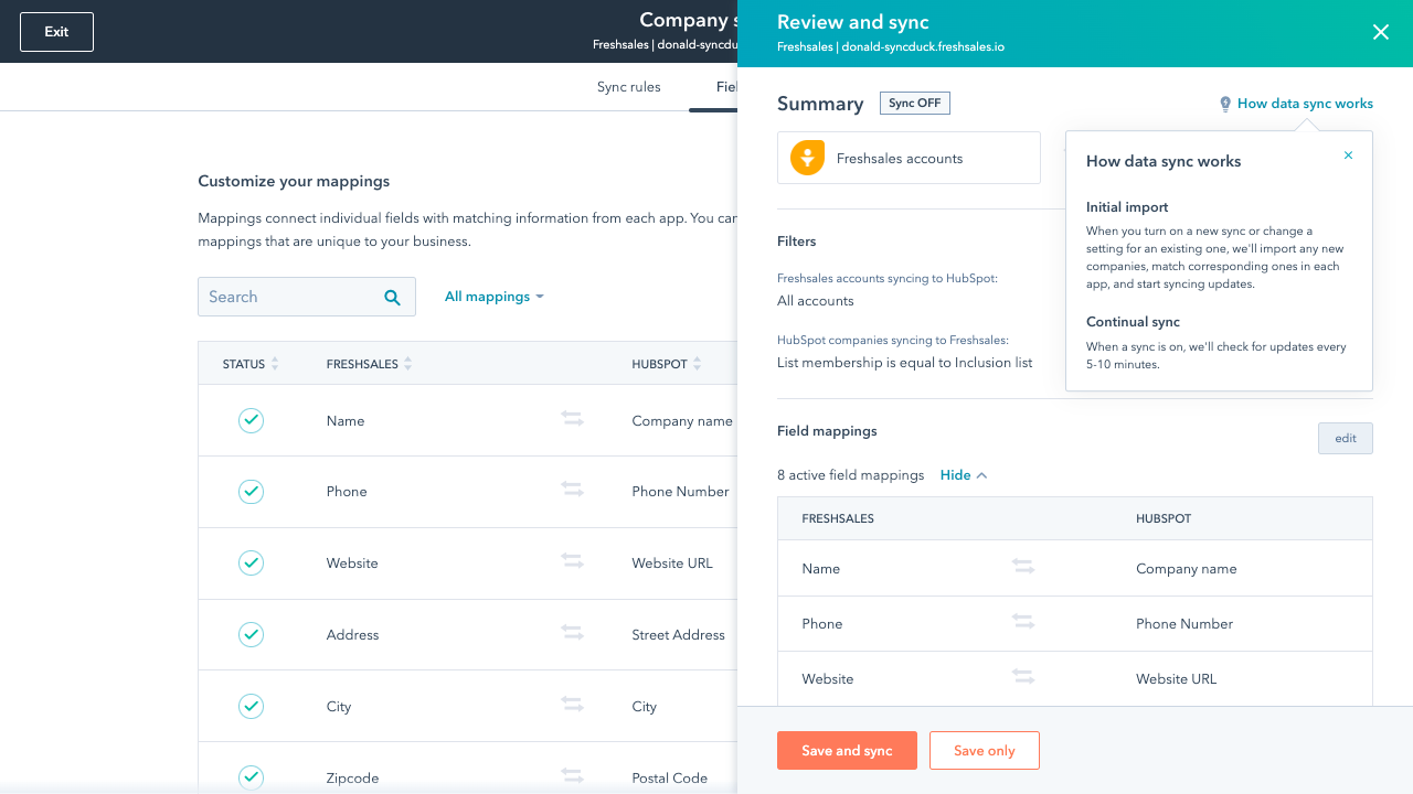 Data Sync - Sync Freshsales (Classic) data with HubSpot