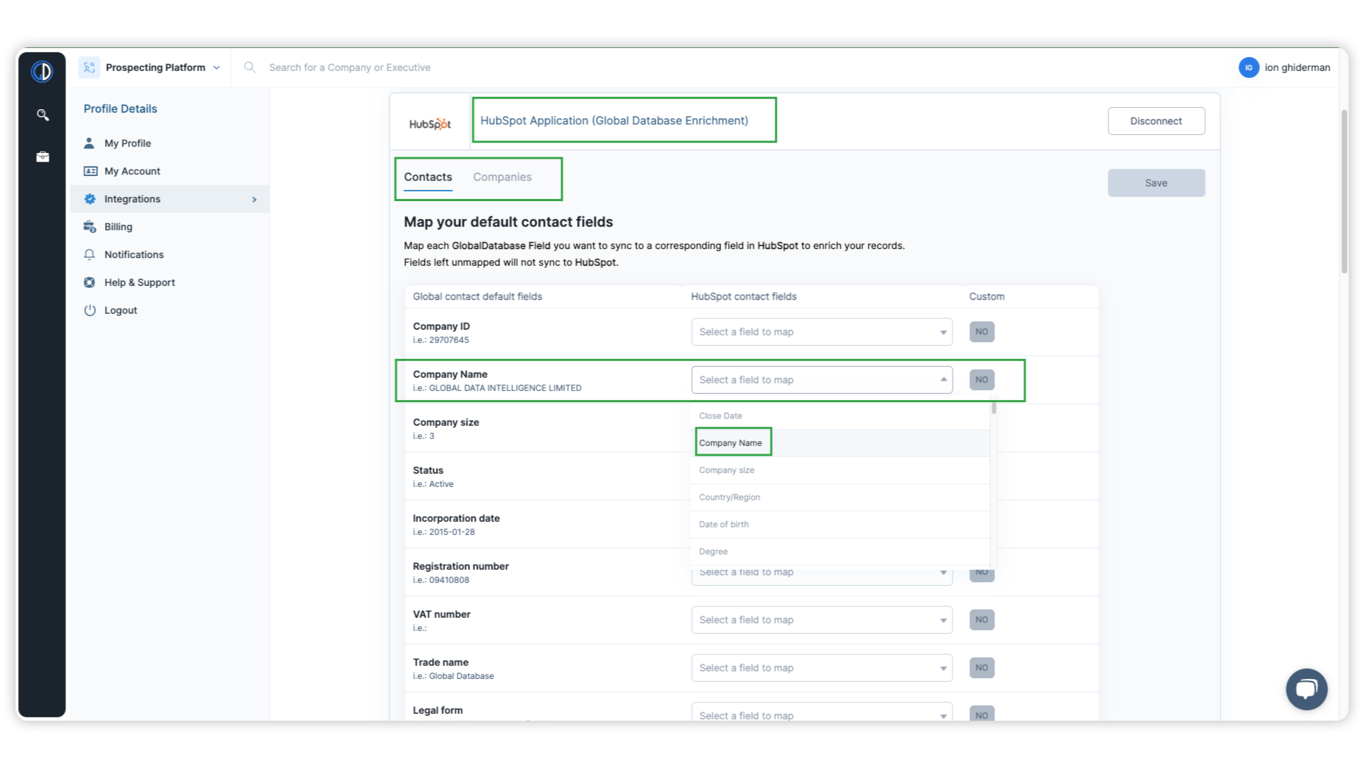 Mapping GDB fields to HubSpot fields