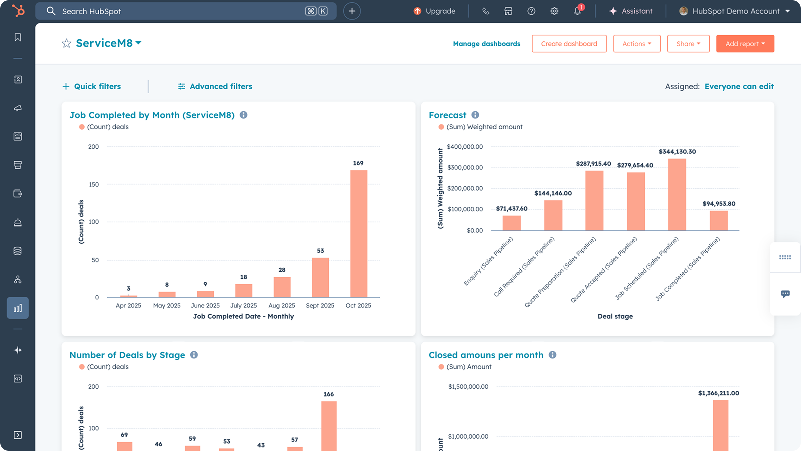 Turn job data into insights. Build custom HubSpot reports showing job volume, revenue, and turnaround times to measure team performance and marketing ROI — all powered by live ServiceM8 data.