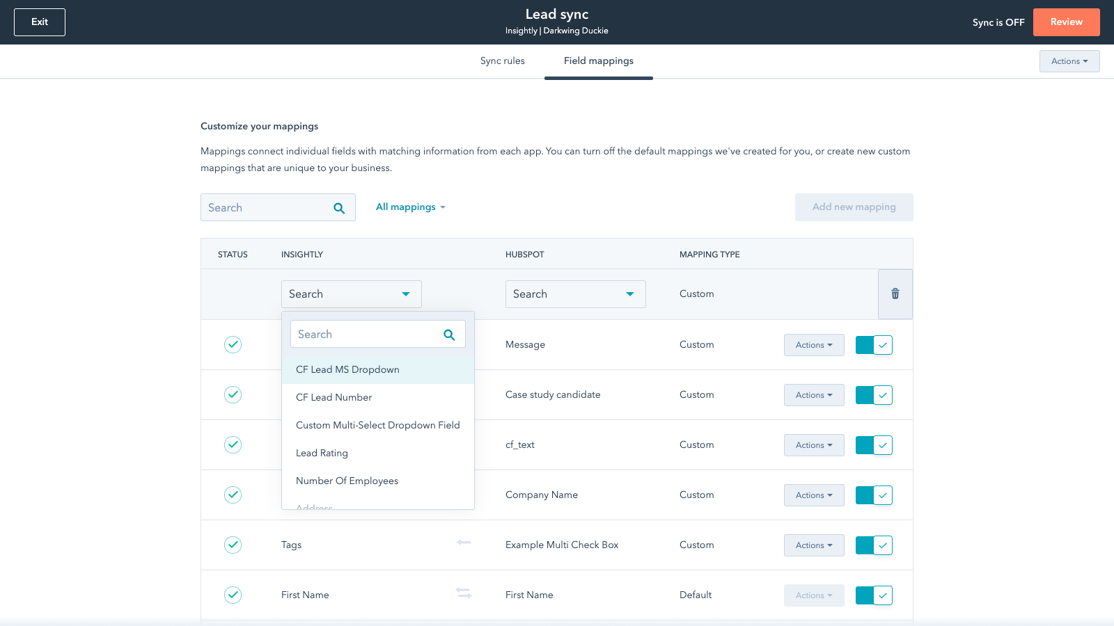 - Two-way sync: Data is shared between Insightly and HubSpot in real time