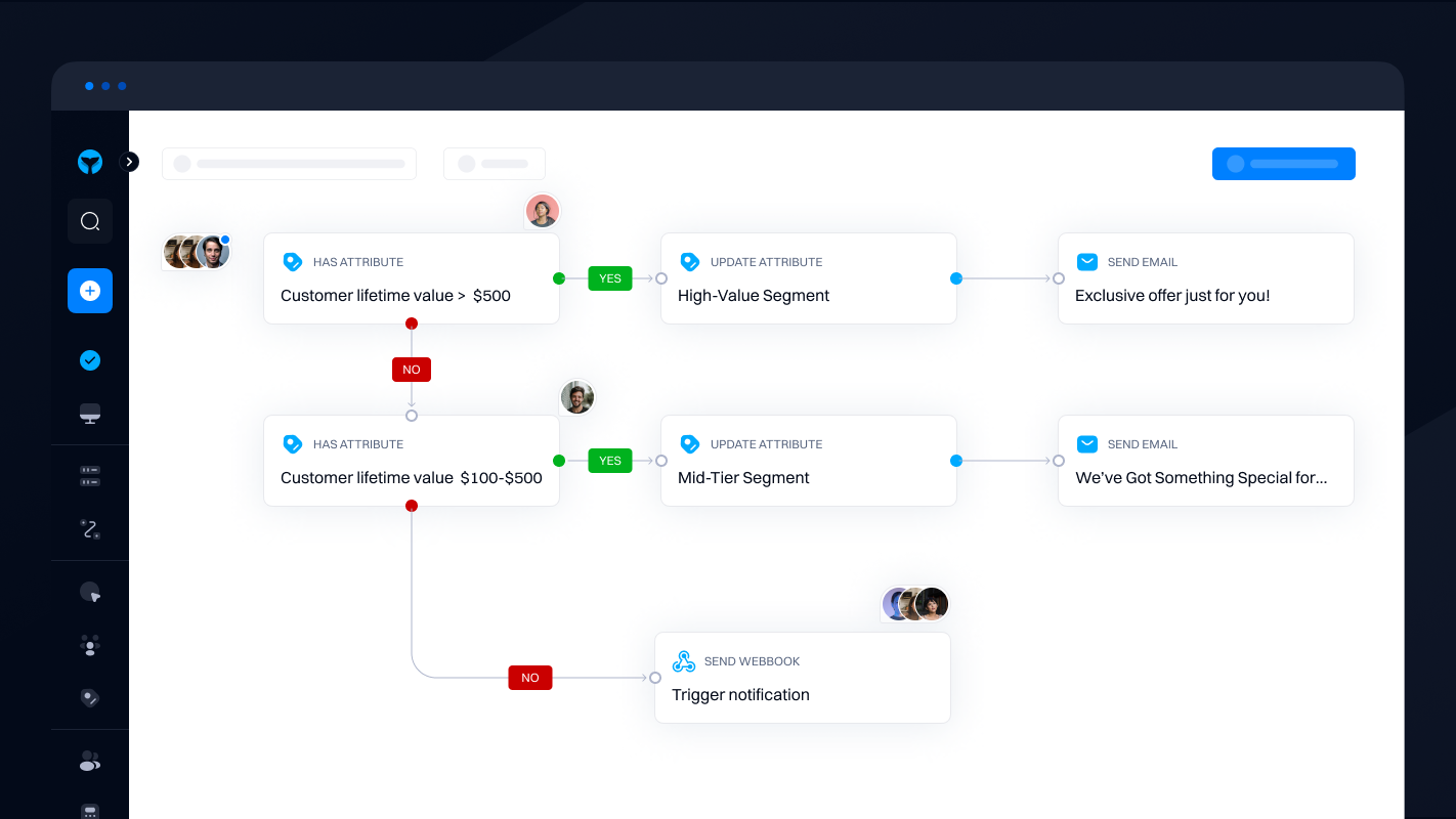 Create and manage highly targeted, real-time experiences tailored to user behavior. Personalize messaging and actions based on interactions, engagement history, and lifecycle stage to drive higher conversions and sustained growth.