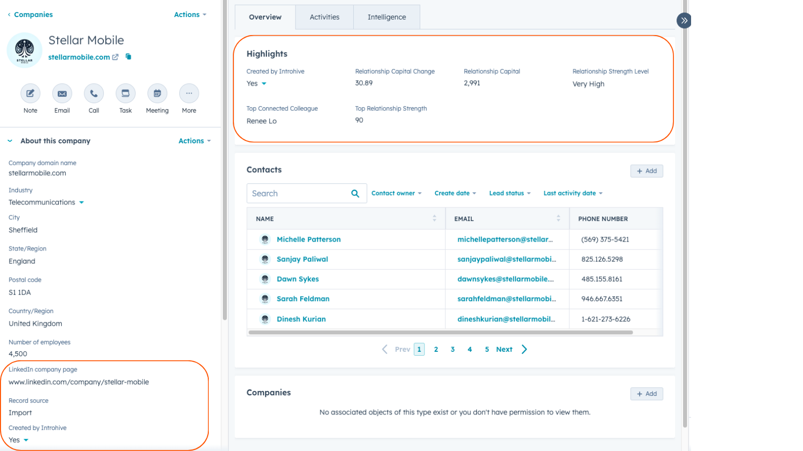 View Relationship Data, Company Information, Top Connected Colleagues, and more related to company or contact records being viewed in HubSpot, or based on what you’re viewing on the web. Quickly access the corresponding page in Introhive for deeper insights and to access key workflows.