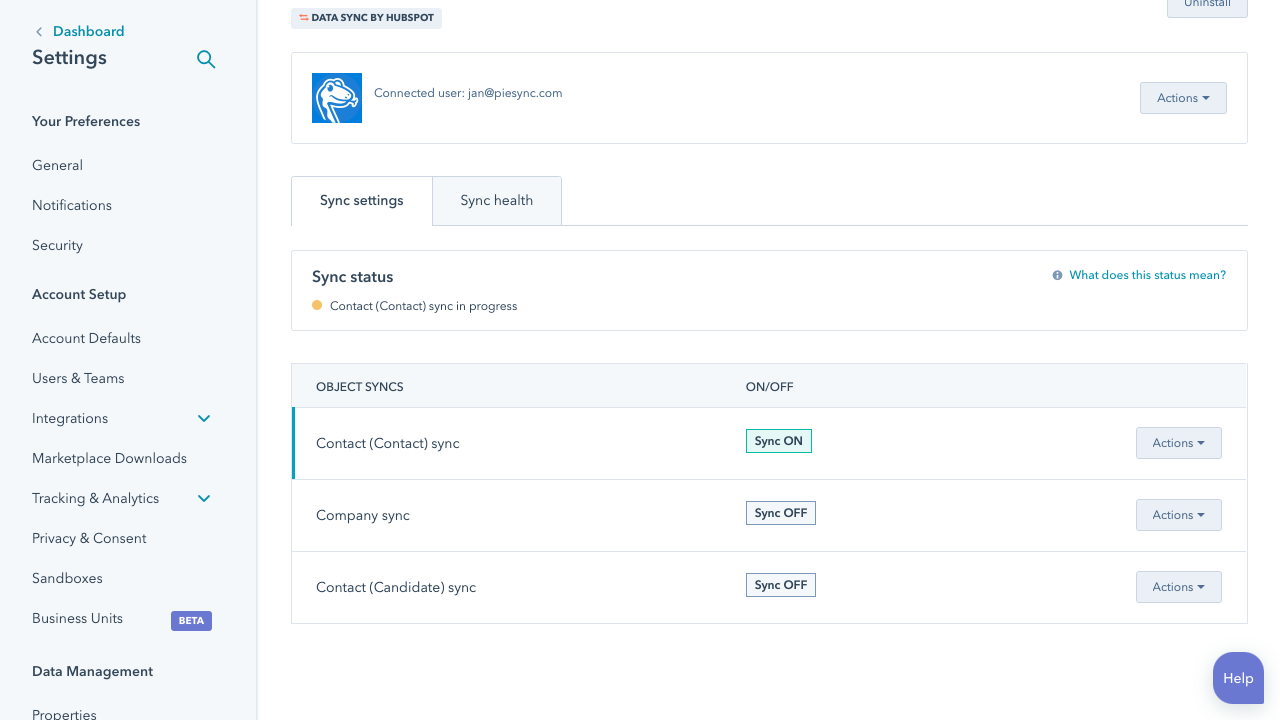 - Historical syncing: Your existing data will sync right away, and updates will sync as they happen