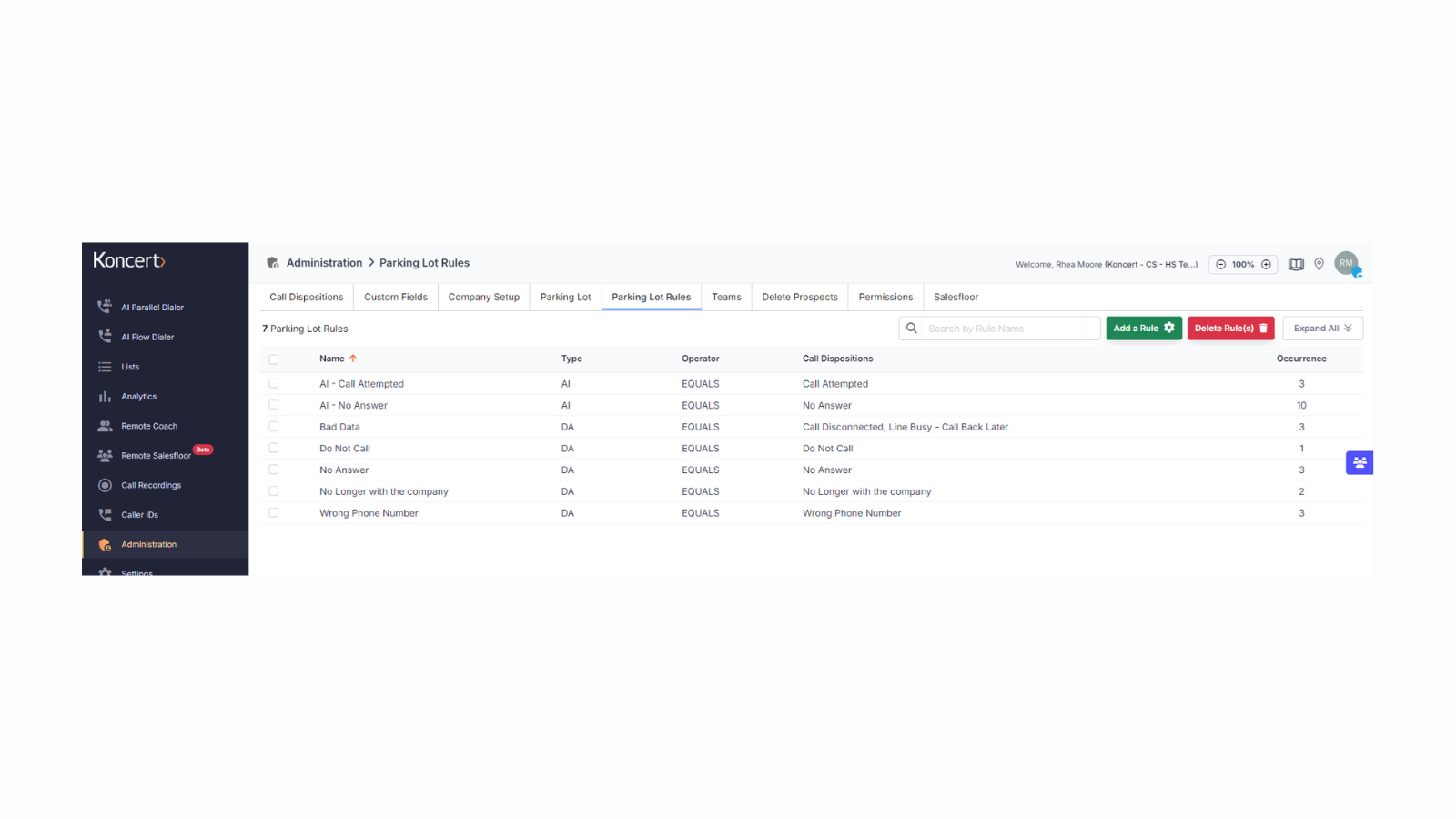 Koncert ensures reps are not wasting dials calling the same “bad numbers”. That old fax machine isn’t going to pick up no matter how many times you call it. Parking Lot quarantines bad numbers so your team can focus on the legit ones