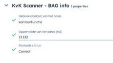 Zorg dat elk adres in je HubSpot-database correct en volledig is. De KvK Scanner App haalt informatie op uit het Basisregistraties Adressen en Gebouwen (BAG)-register en verifieert details zoals gebruiksfunctie, oppervlakte in m² en postcodestatus.