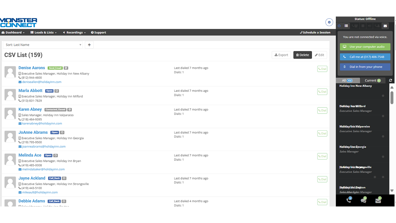 You can easily import a prospect list into MonsterConnect and click go to start calling them.