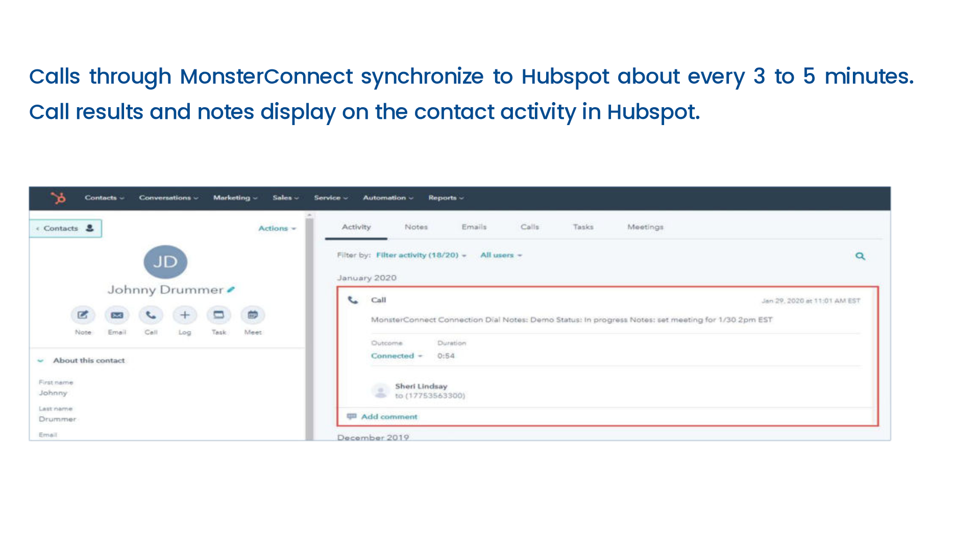 Every note you take from your call with a Prospect on MonsterConnect will reflect in your HubSpot without having to manually do it!