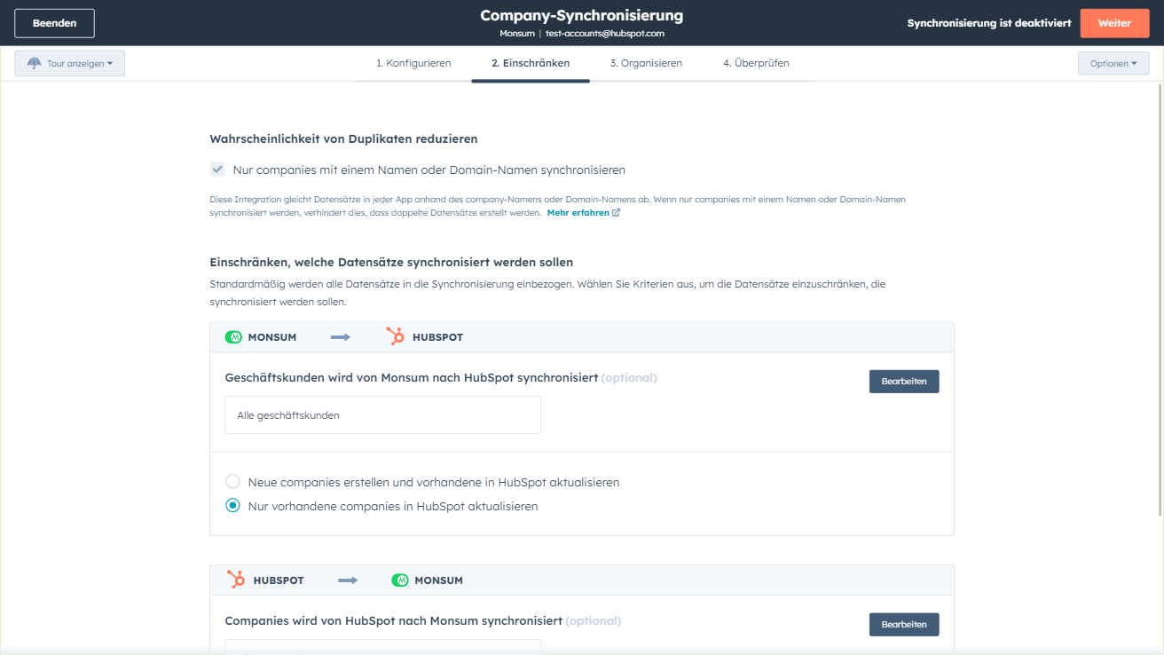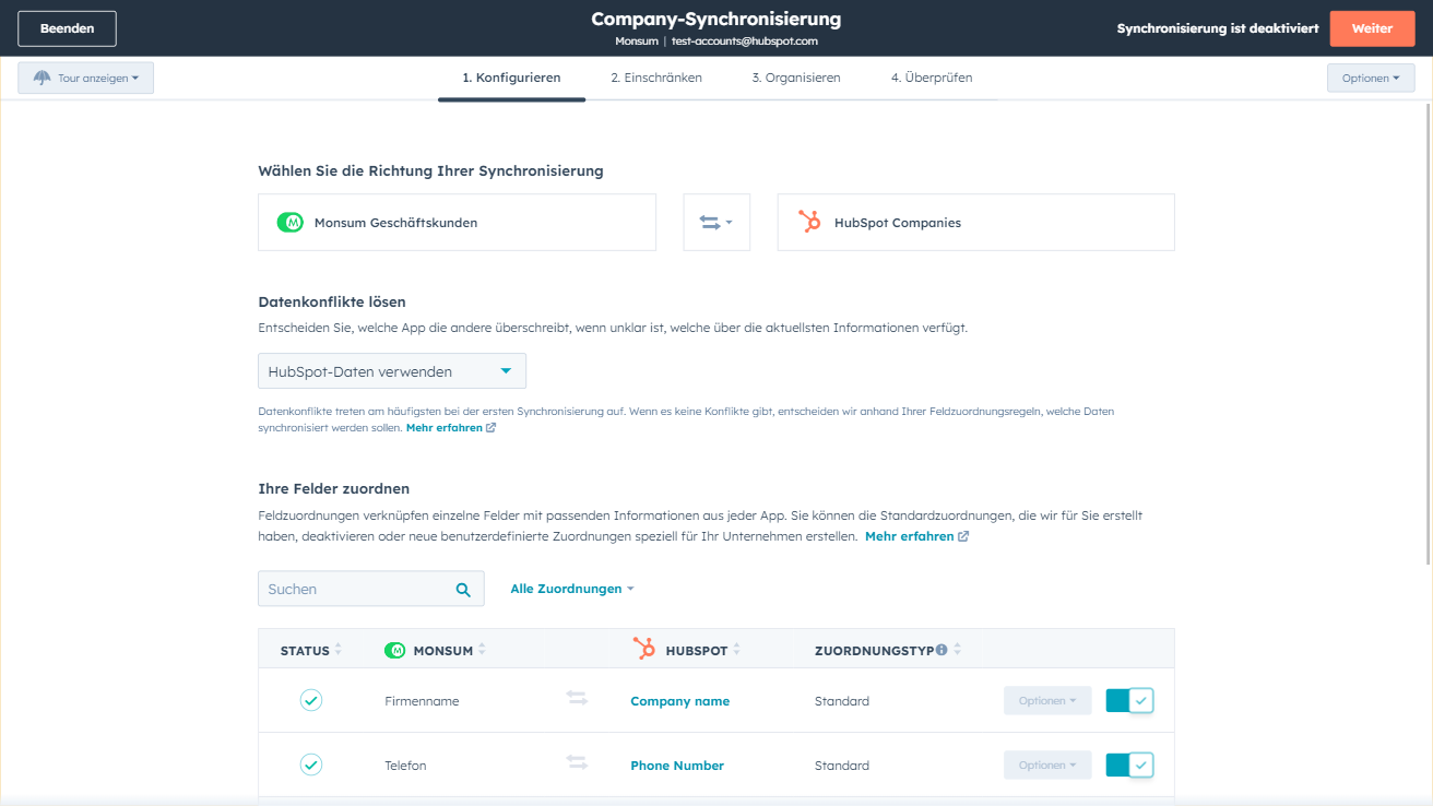 Synchronisieren Sie Monsum- und HubSpot-Daten