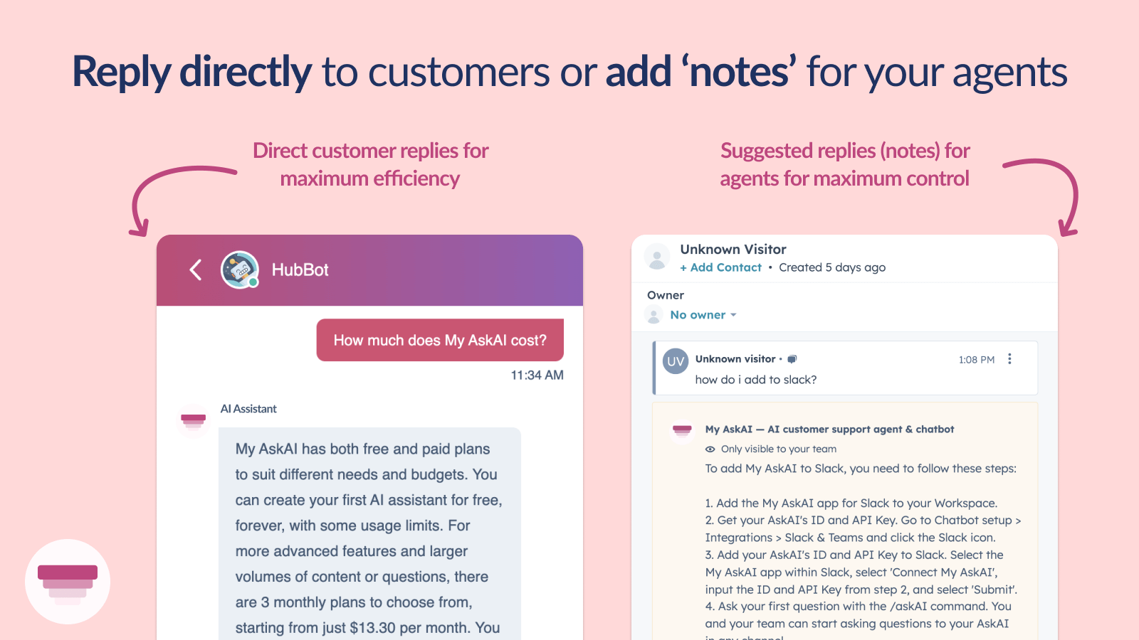 My AskAI is the easy-to-setup and affordable AI customer service agent for HubSpot that you've been looking for.