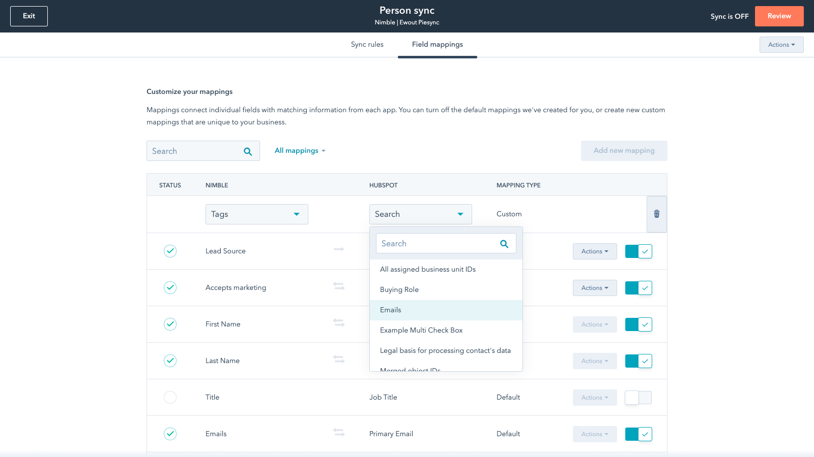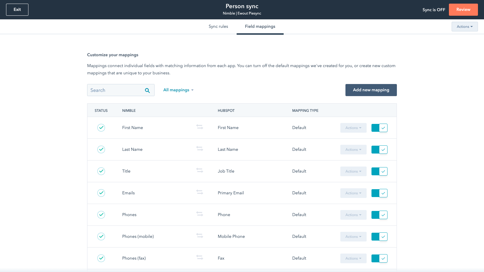 - Two-way sync: Data is shared between Nimble and HubSpot in real time