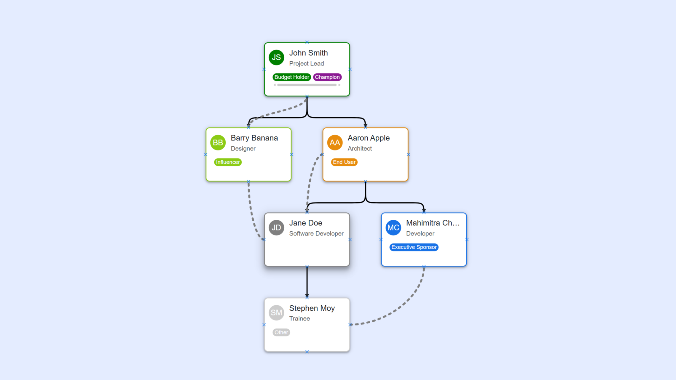Set connections between multiple contacts on how they connect with each other, as an influencer, or as a worker bee or some other means. This will help sales person to understand whom to include in the sales conversations.