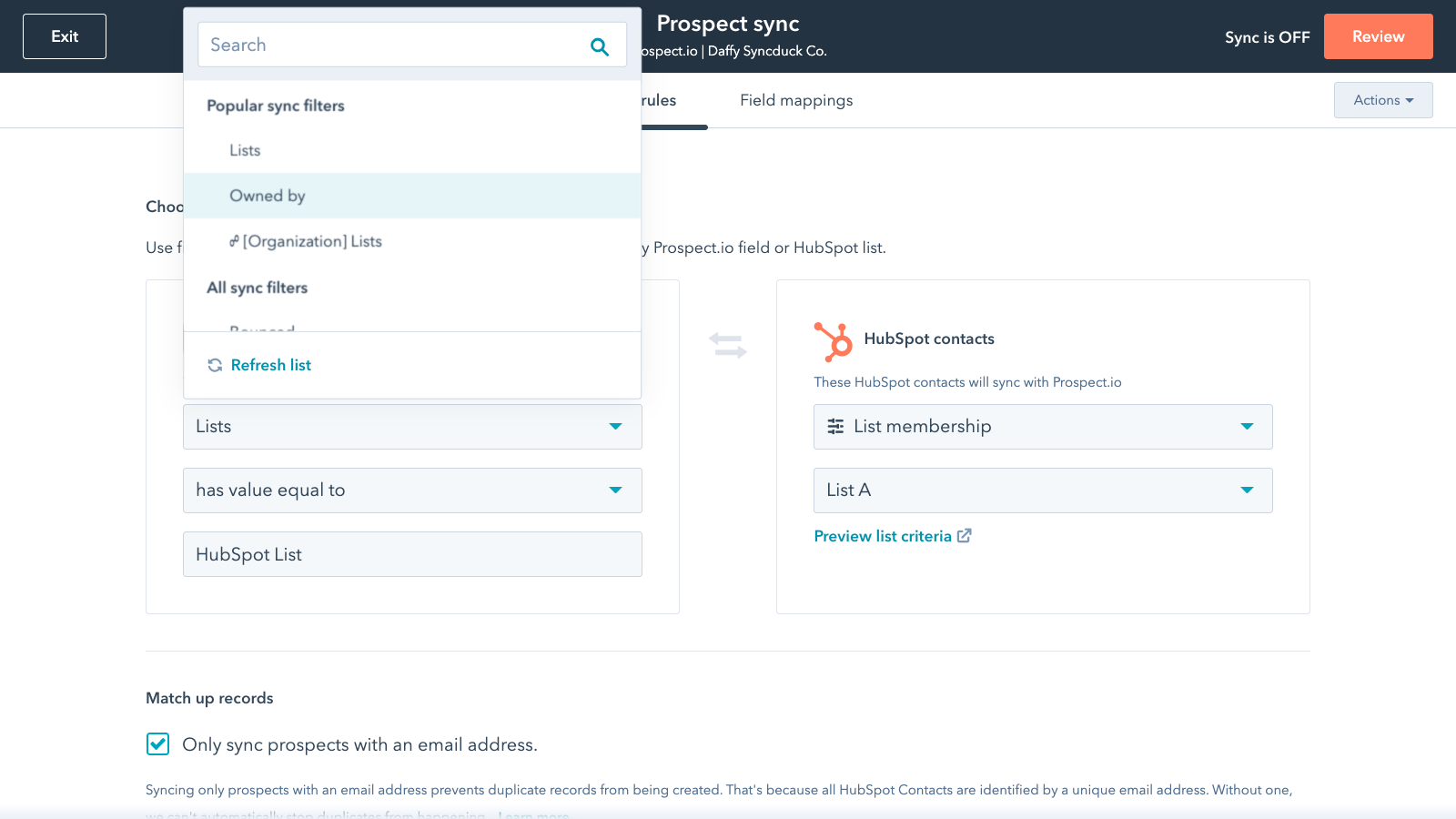 Note: This is a HubSpot built sync, provided as part of its data sync connectors in Data Hub. It can be installed by all plans of Overloop. Before installing app, be sure to try out their own powerful contact sync to HubSpot first, which includes the ability to sync activities to the HubSpot contact timeline.