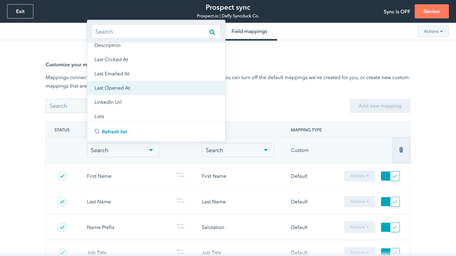 Custom field mappings are available with Data Hub Starter or Professional plans. Custom mappings add the flexibility to create your own mappings or make changes to your default ones.