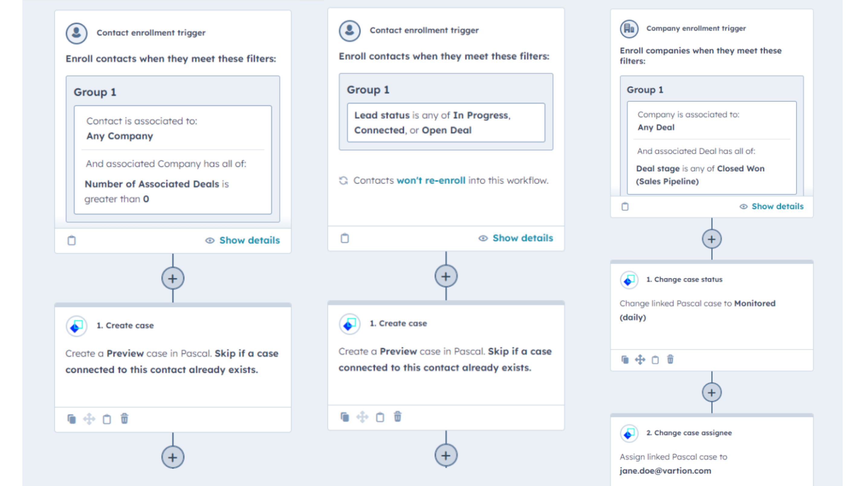 With the new workflow actions feature, you can now initiate Pascal screenings or update existing screenings directly from your HubSpot workflows. This streamlines your compliance workflow, allowing you to trigger screenings automatically based on specific criteria or events defined in your custom workflows.