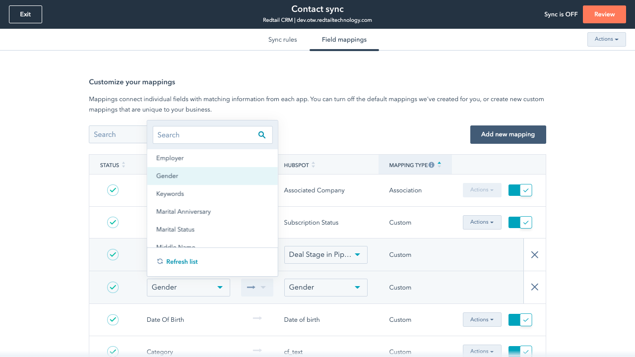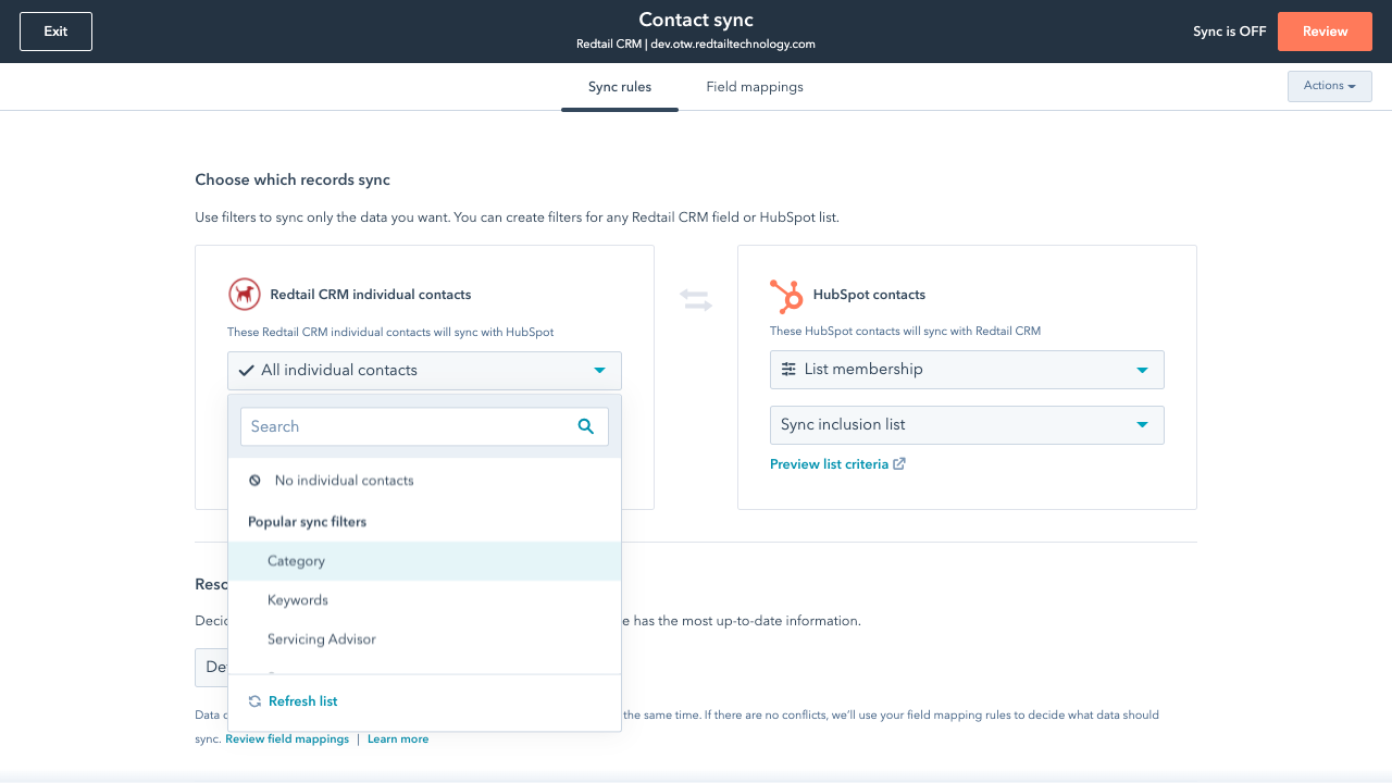 Sync Redtail CRM and HubSpot data