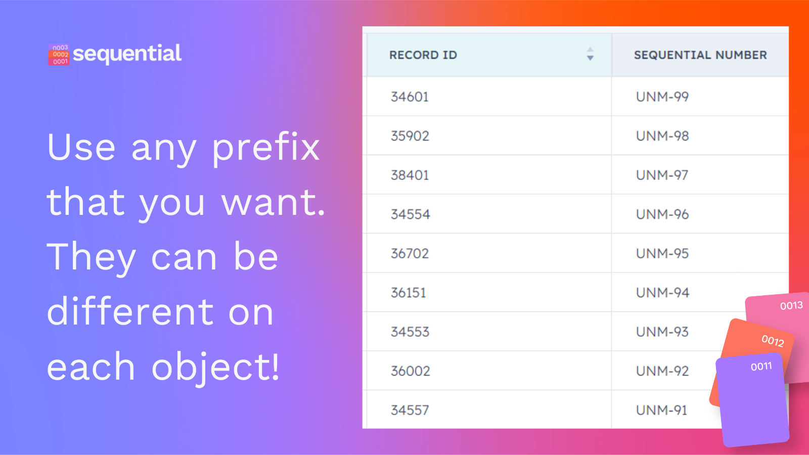 You can add a prefix to your number too, such as UNM-0001. Perfect for easy referencing with your internal teams.