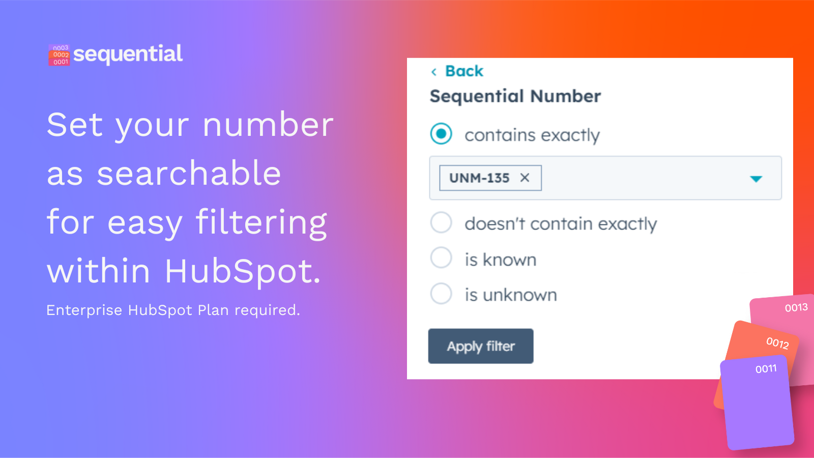 Fed up of referring to records in your HubSpot by their HubSpot ID? Sequential allows you to add your own number to keep things simple.