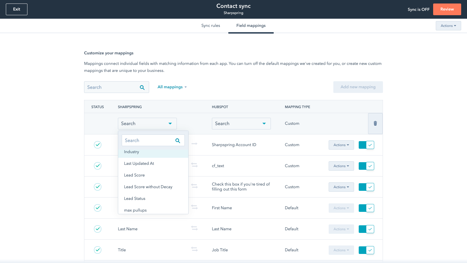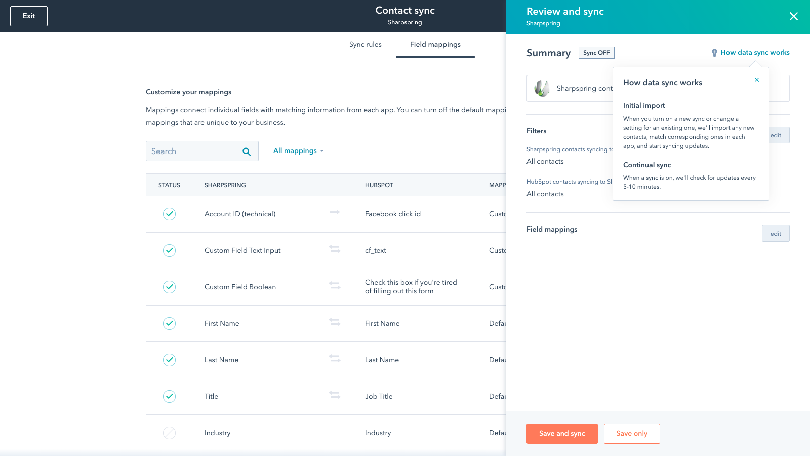 - Two-way sync: Data is shared between Sharpspring and HubSpot in real time