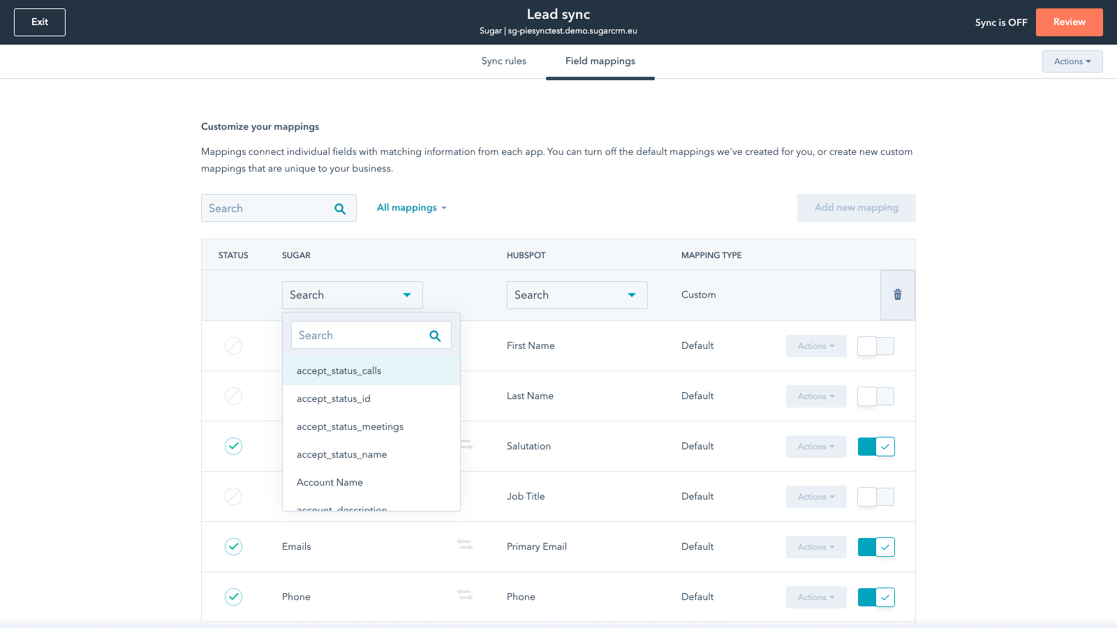 Two-way sync: Data is shared between Sugar and HubSpot in real time