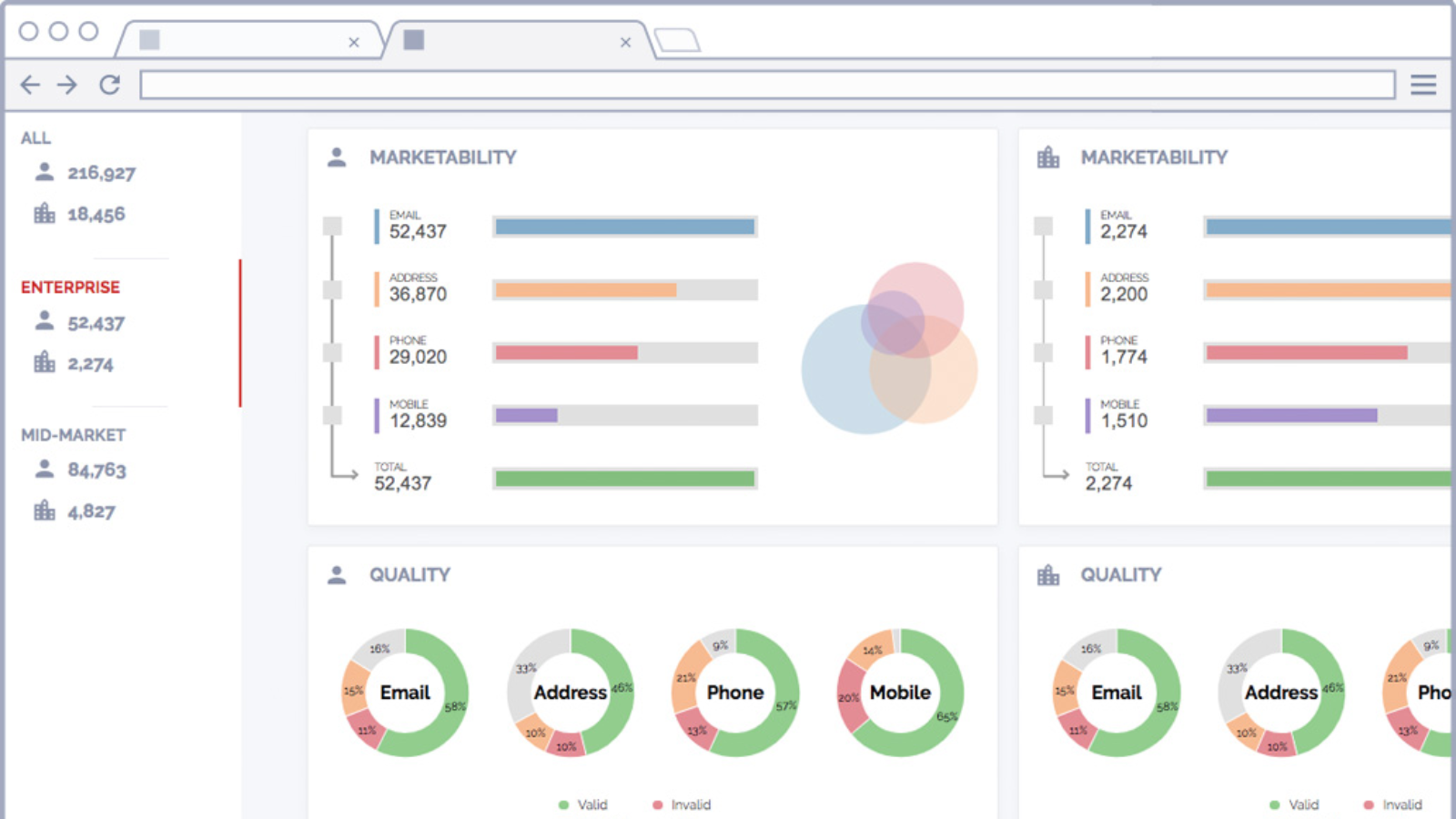 Compare your segments to the universe of contacts and accounts with third-party data providers, Identify missing data, Know you are reaching the largest audience.