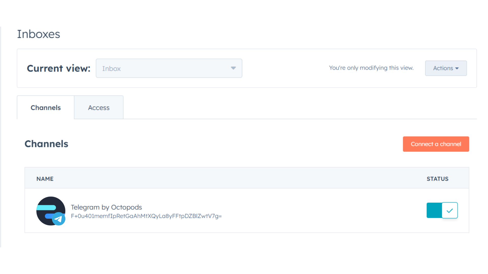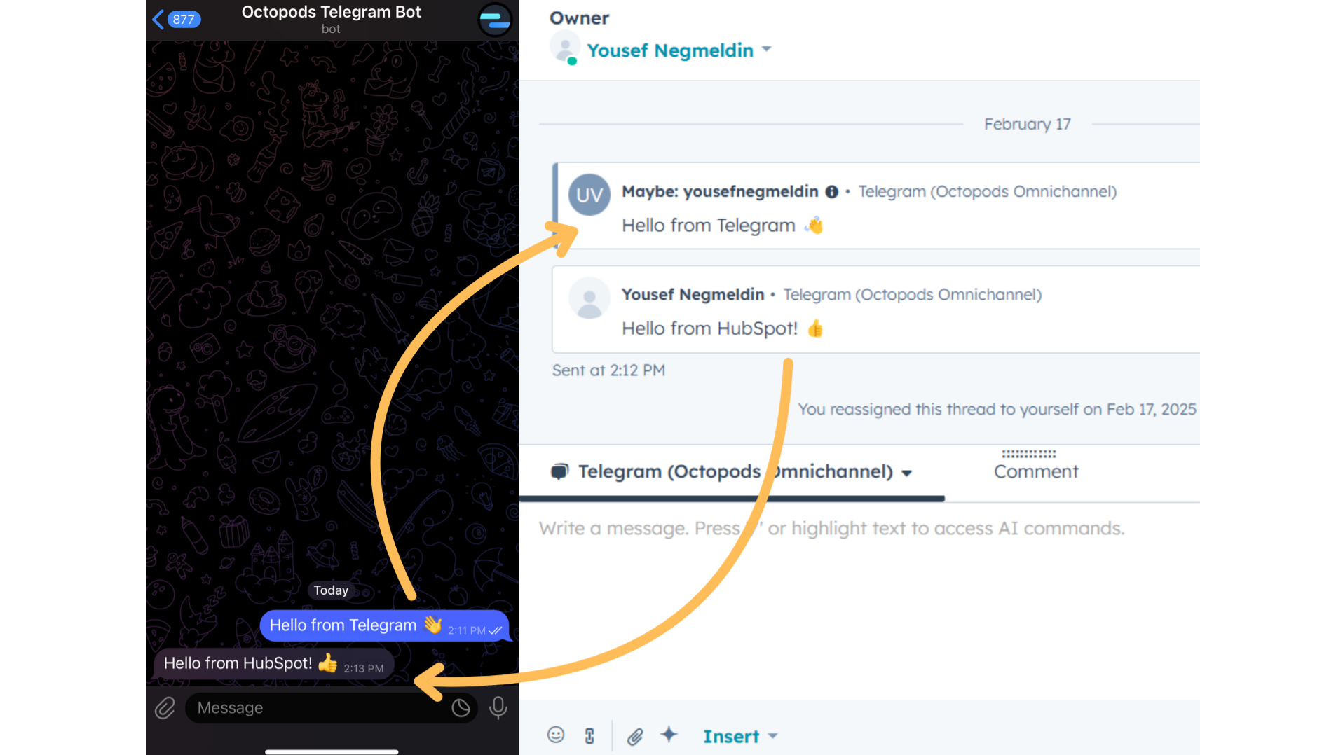 Telegram by Octopods lets you connect as many of your Telegram Bots to your HubSpot Inbox(es).