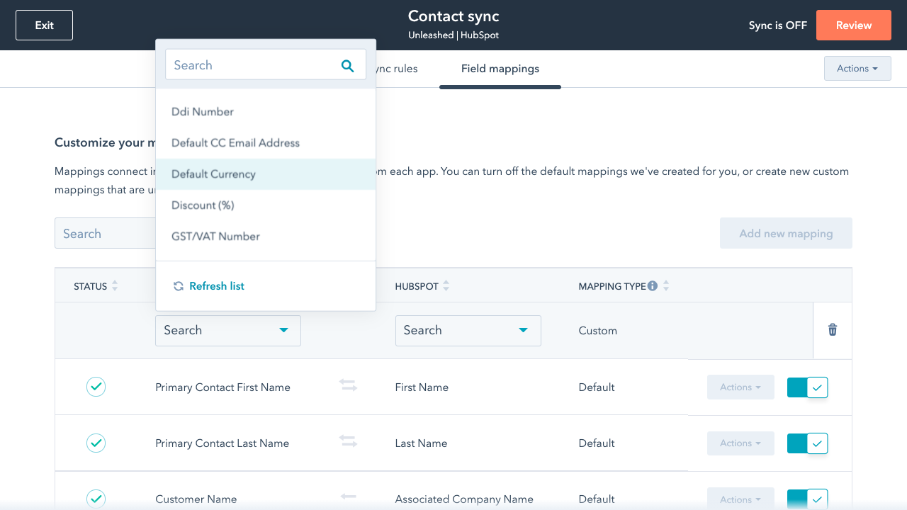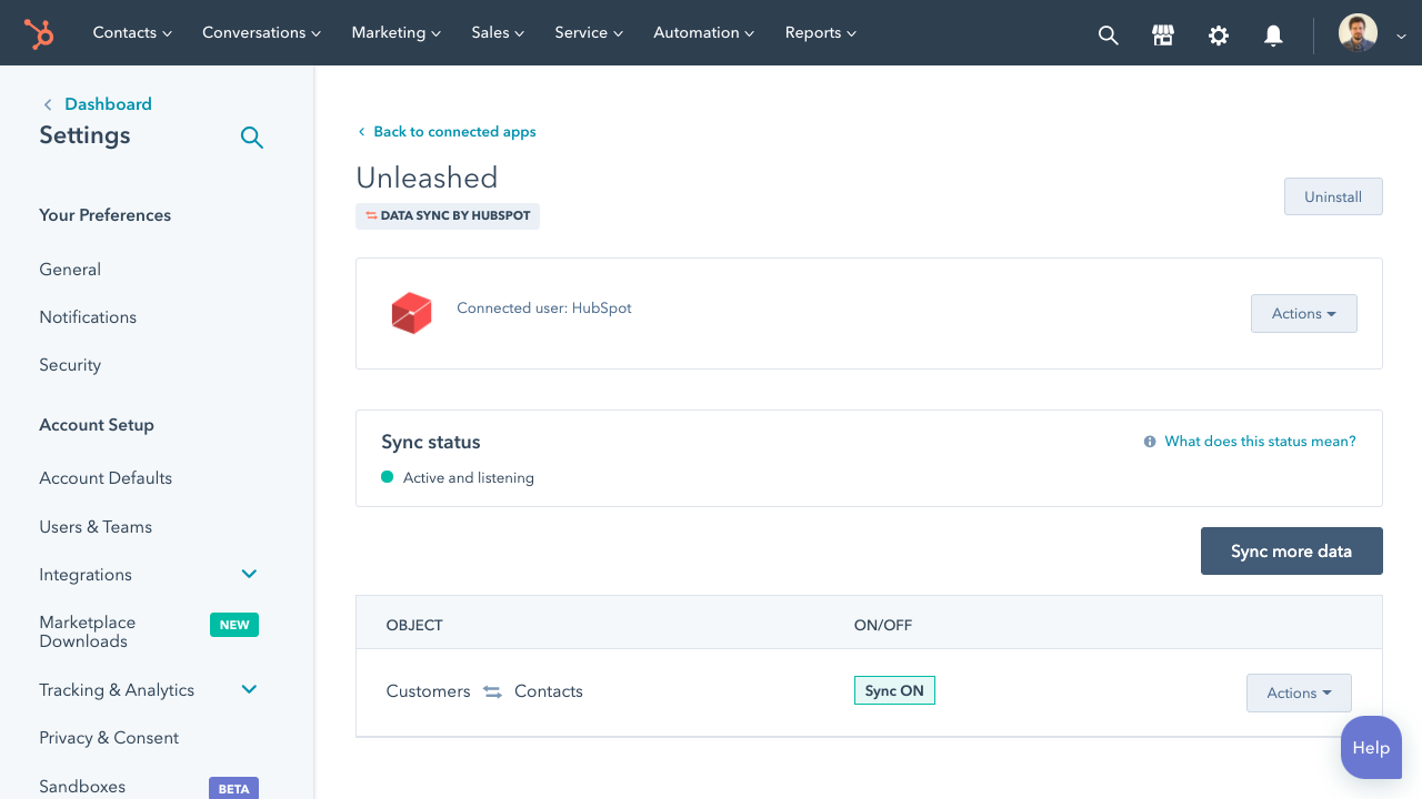 Data Sync - Sync Unleashed (B2C) data with HubSpot