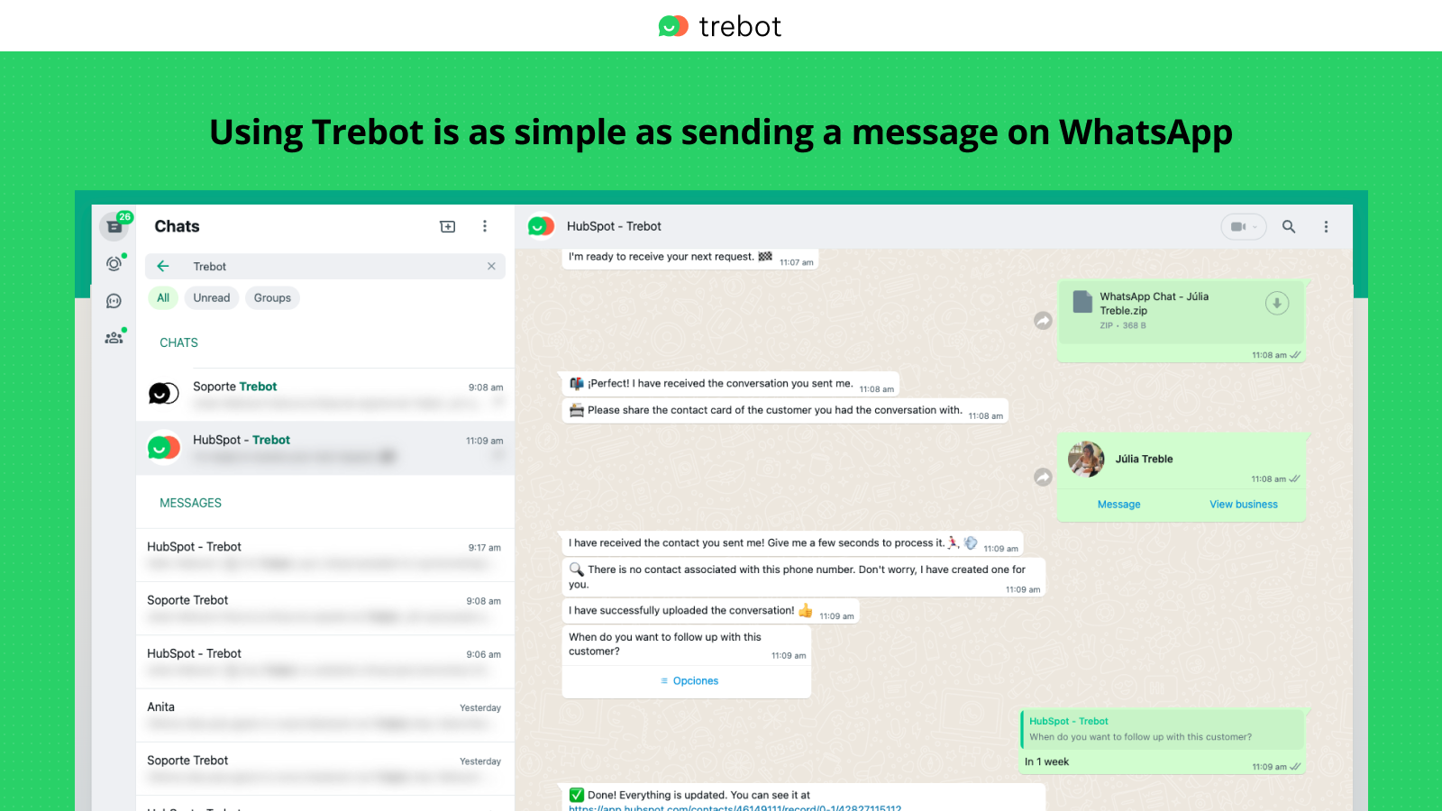 Integrate WhatsApp conversations to HubSpot with Trebot-3-minute setup