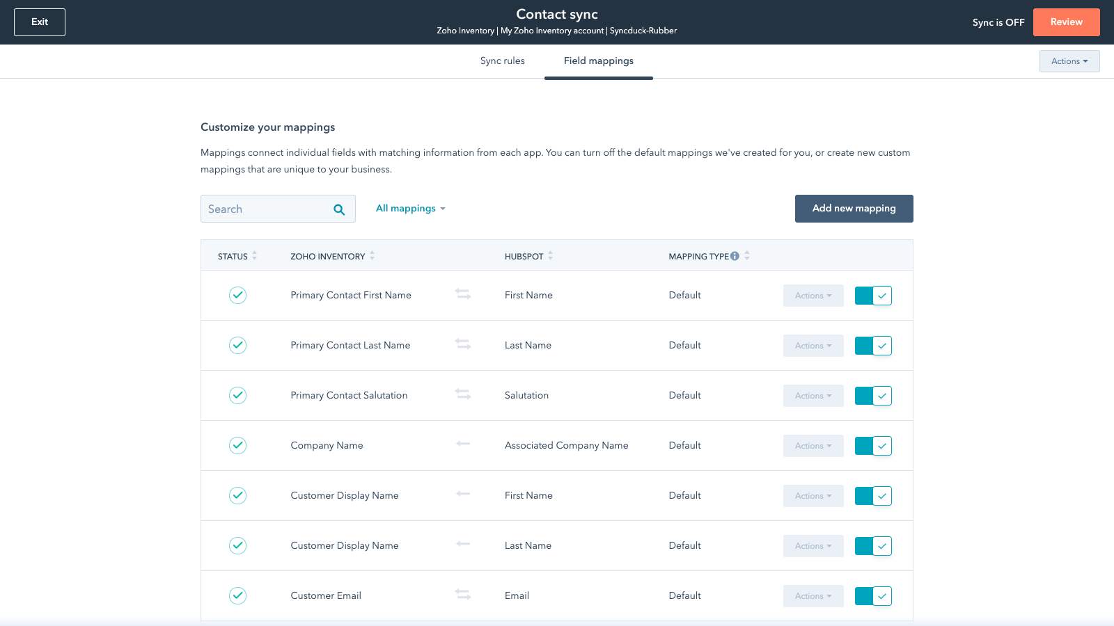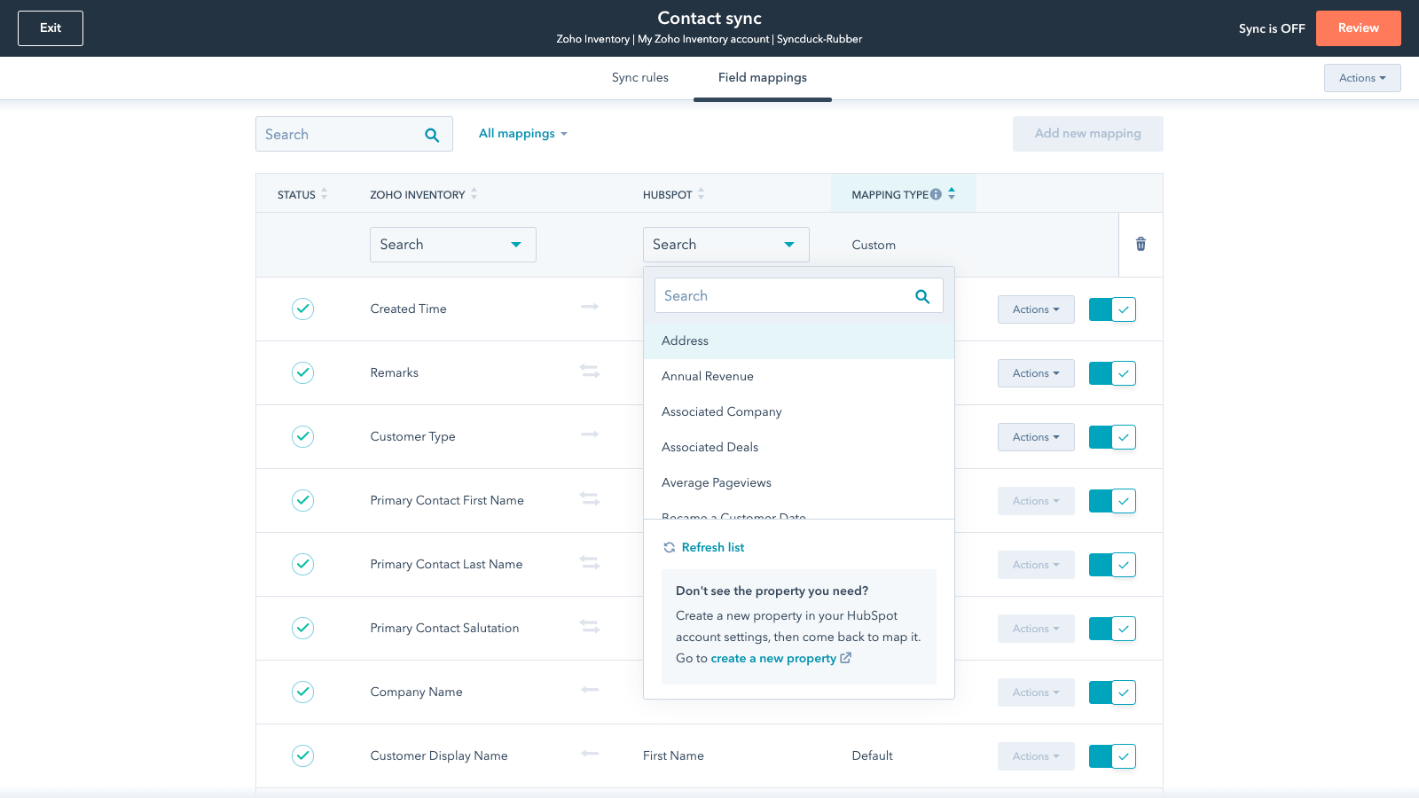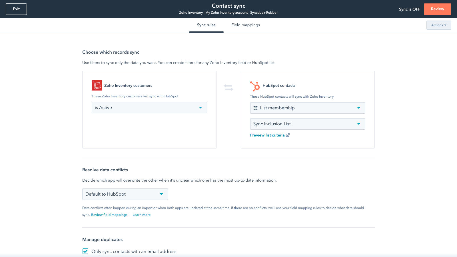 Data Sync - Sync Zoho Inventory data with HubSpot