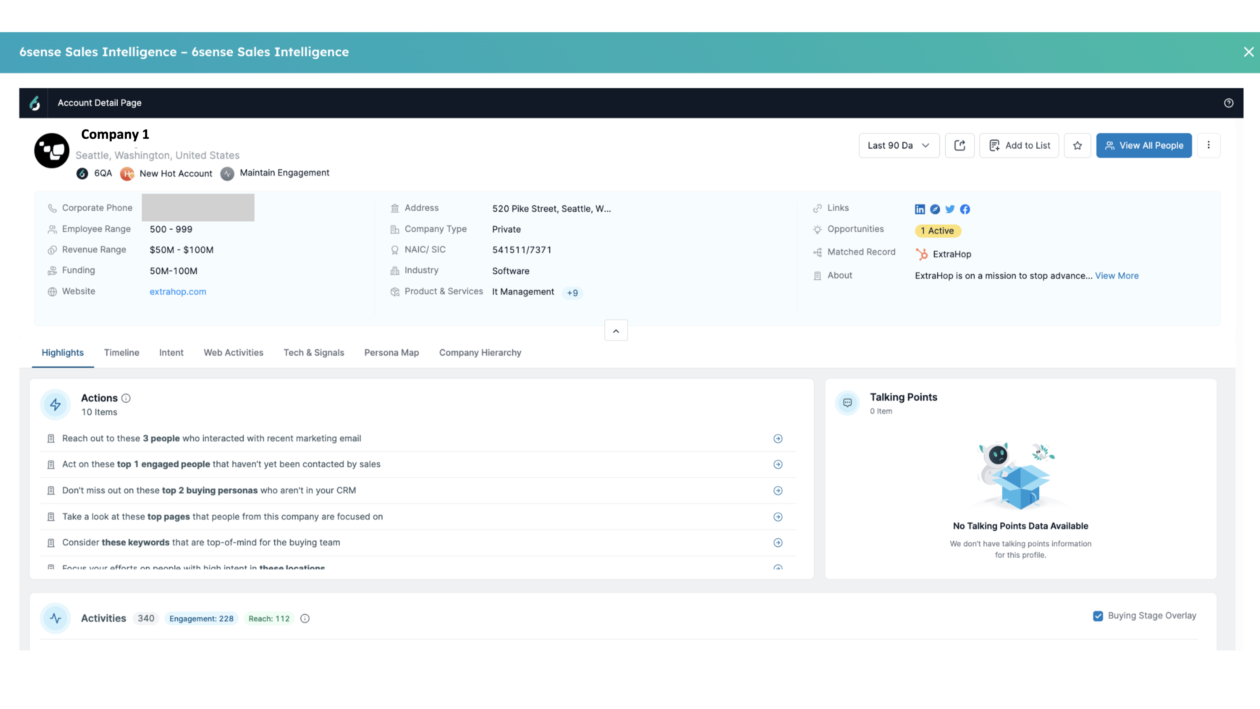 6sense's enterprise-grade CRM/MAP integration with HubSpot creates a unified source of truth for revenue teams. 6sense ingests CRM/MAP historical data to build proven AI predictive models and uncover target buyers. This integration allows revenue teams to easily sync your HubSpot Platform data, see persona-based segments, and use the 6sense Sales Intelligence in your HubSpot platform. 6sense helps sellers reveal hidden deals & buyers, focus on the best accounts, and save themselves time. Use 6sense’s actionable revenue intelligence, contact data, and powerful actionability within HubSpot to deliver a more personalized, unified source of truth for revenue teams.