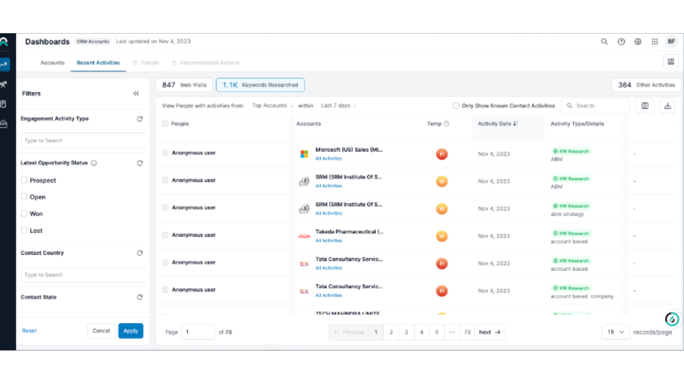 1/4 - 6sense Dashboards