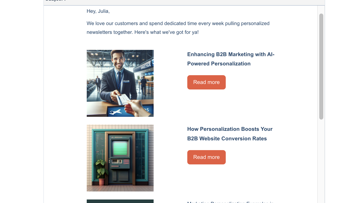 Most of your prospects aren’t ready to buy, but your content gives you the best chance to get prospects back when they’re ready. Create emails that serve the best of your content for each recipient, automatically, with a couple clicks.