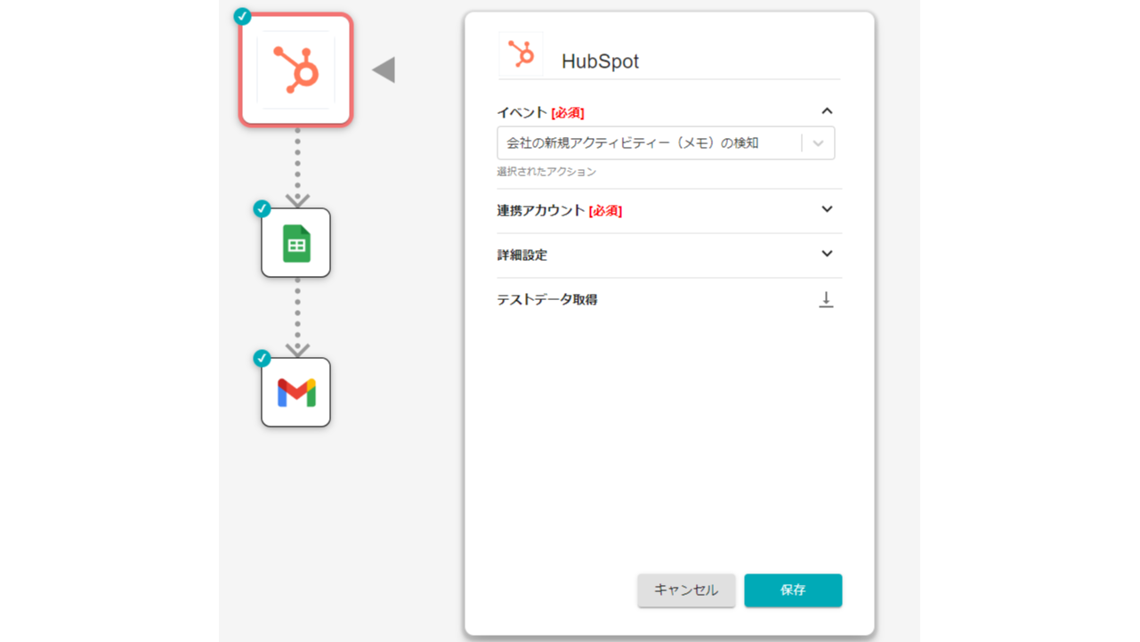 レシピにはないオリジナルのフローも作成可能です。業務に合わせてHubSpotと他のSaaSアプリケーションを連携した業務フローを簡単に作成することができます。