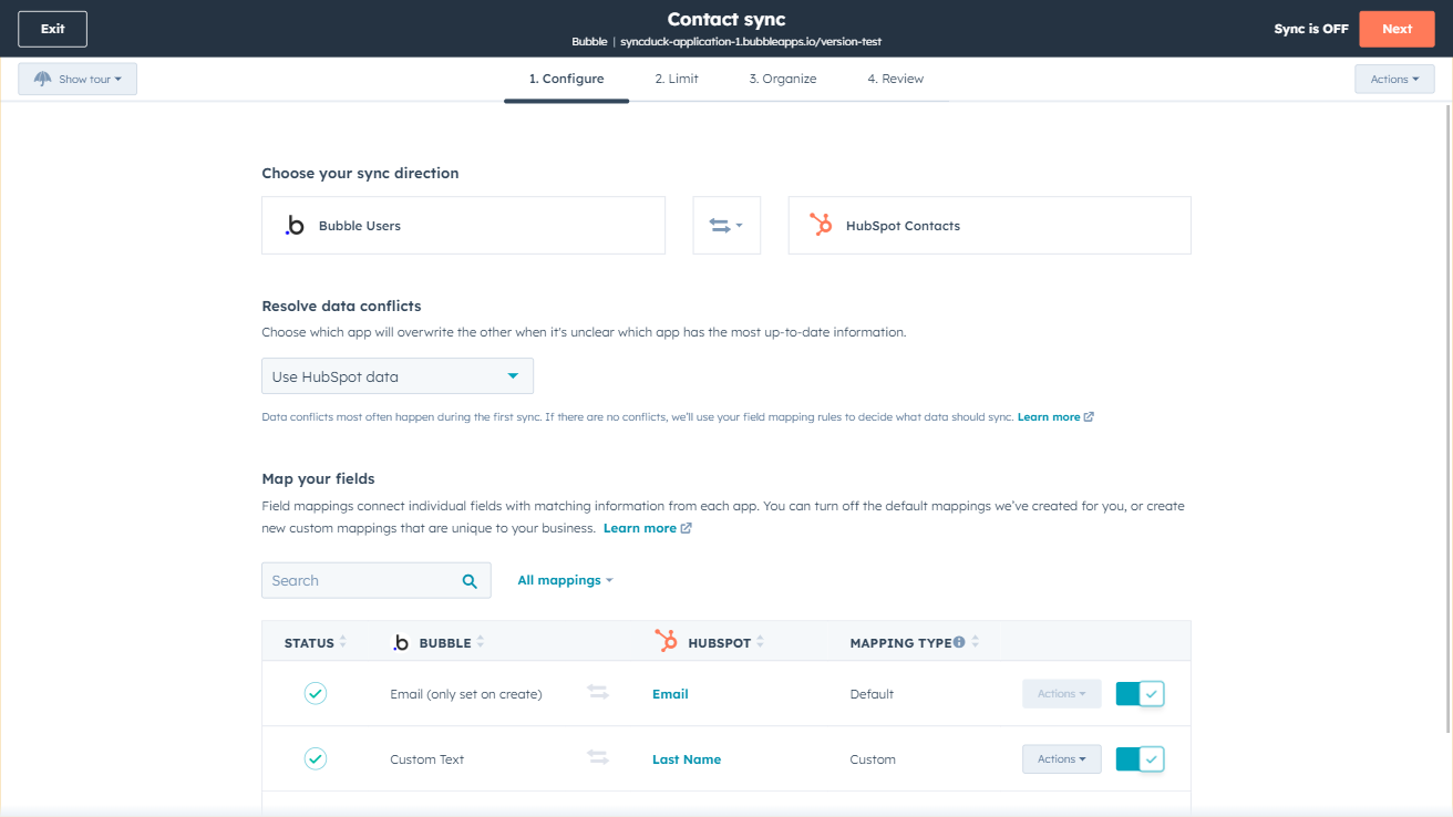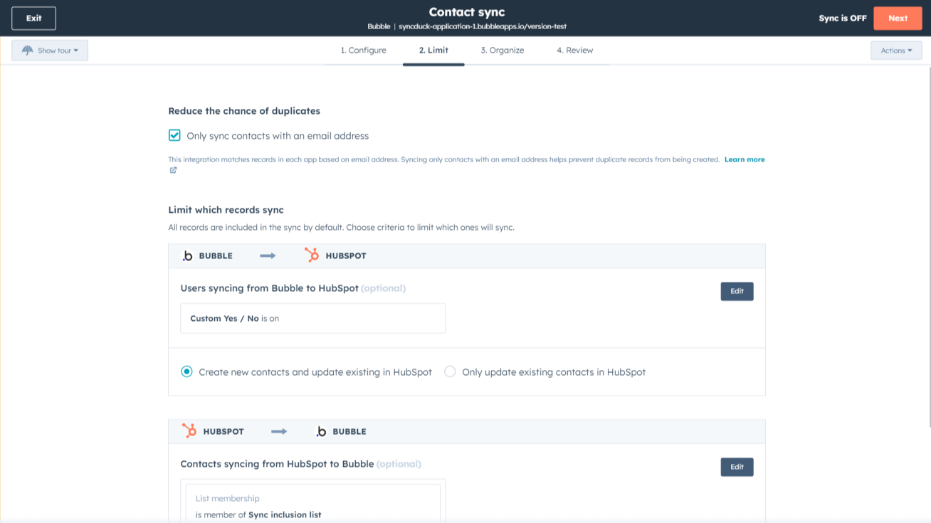 Two-way sync: Data is shared between Bubble and HubSpot in real time