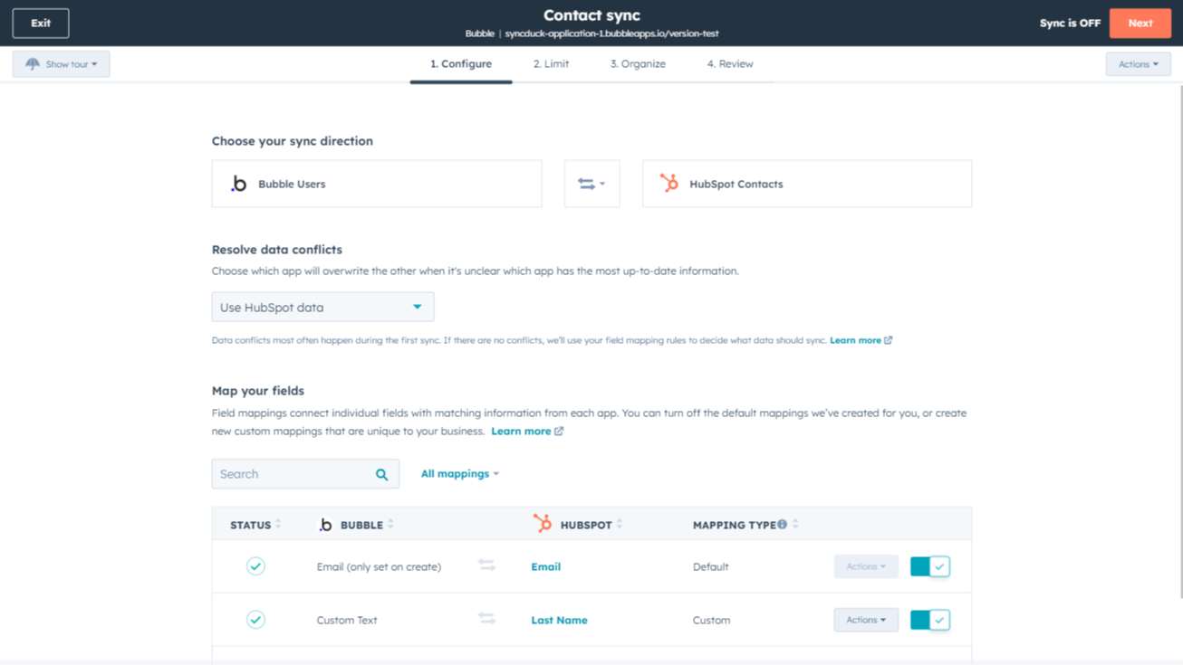 Sync data between Bubble and HubSpot without manual data entry or messy, time-consuming imports.