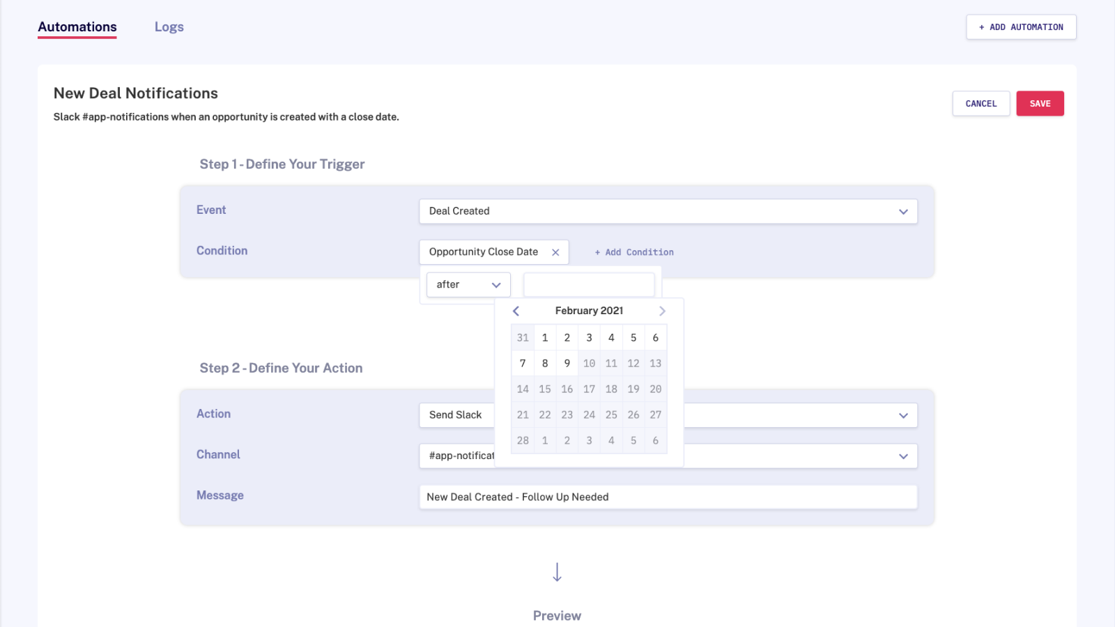 You can created automated workflows from any of your customer data. Get alerted when key events happen (eg payment fails, new deal created, large number of support tickets, etc)