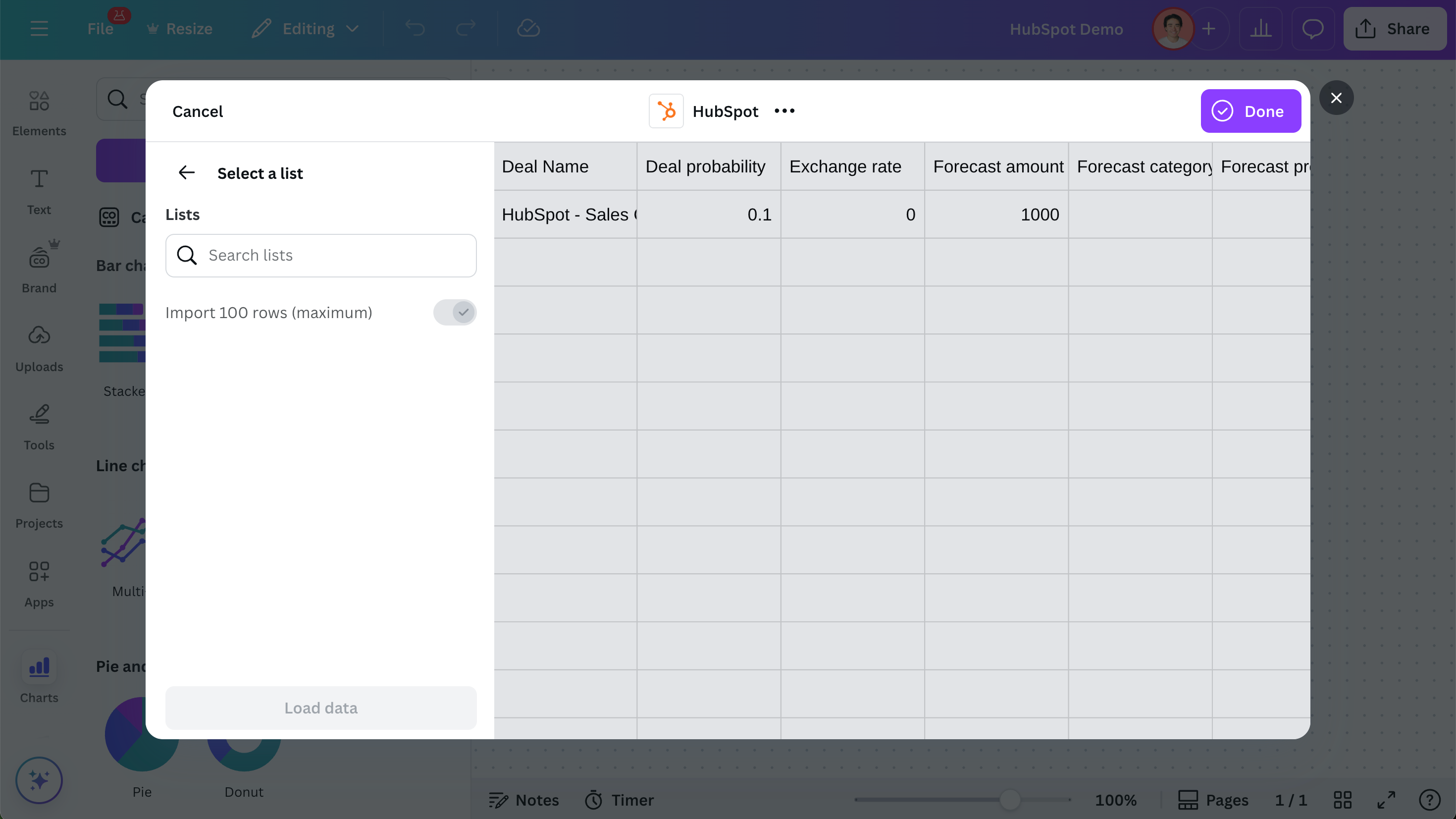 Import Lists from HubSpot and instantly create charts, dashboards, and reports that help your team take action. Whether you’re tracking sales, segmenting customers, or reporting on support tickets—you’ll bring clarity to every insight, all without leaving Canva.