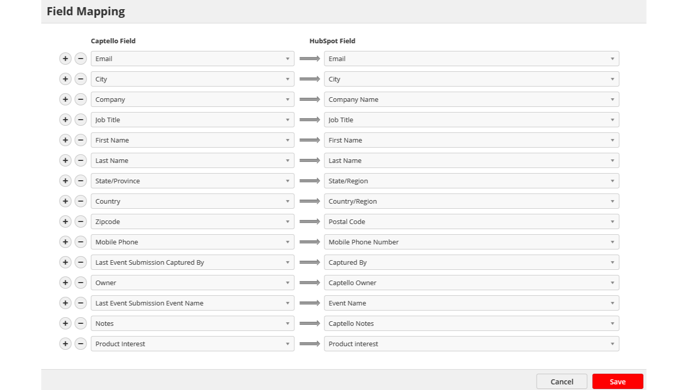 Captello allows you to create custom fields and map them to your HubSpot properties.