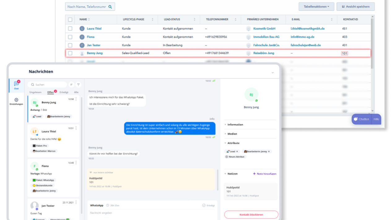 - Zusätzliche Informationen und direkte Links zu HubSpot in den ChatWerk Notizen.