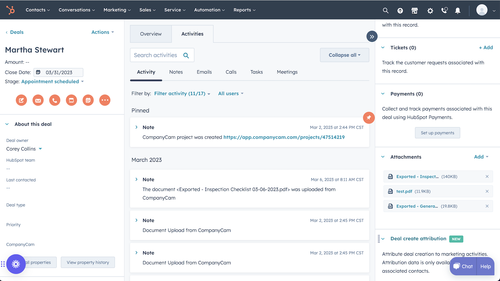 Listen, I LOVE Company Cam independently but this isn't an integration. You have to export the checklist manually and it ONLY works on customers in HubSpot that were created AFTER you turned on the integration. I would also say that Company Cam normally has great support, but the help I didn't get on this was really below standards.