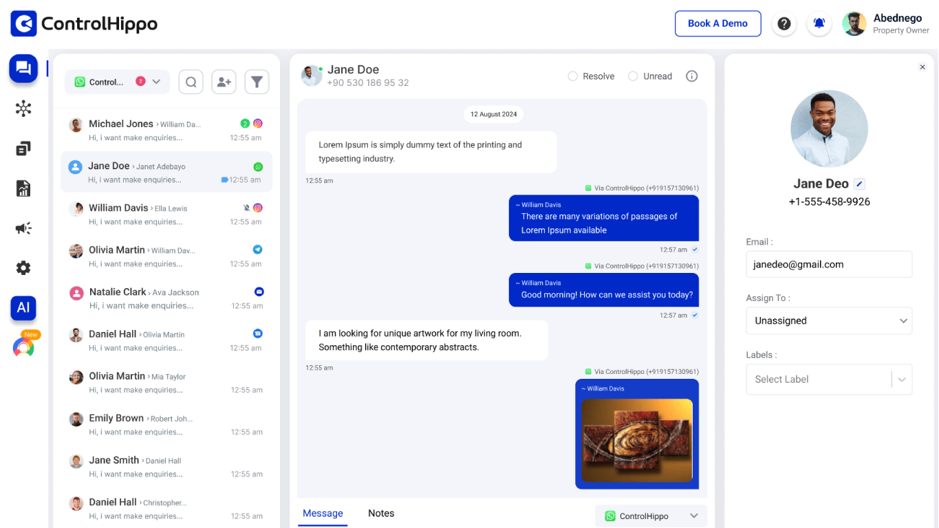 ControlHippo is an AI-powered business chat platform built for sales and support teams. It brings together omnichannel messaging, a collaborative shared inbox, and intelligent automation. By integrating your HubSpot data with 24/7 AI Chat Agents and Assistants, ControlHippo helps you engage leads faster, resolve issues smarter, and close more deals with less manual effort.