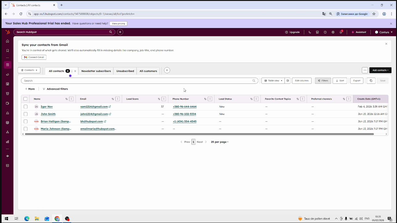 Data Conturs WRITES to HubSpot: