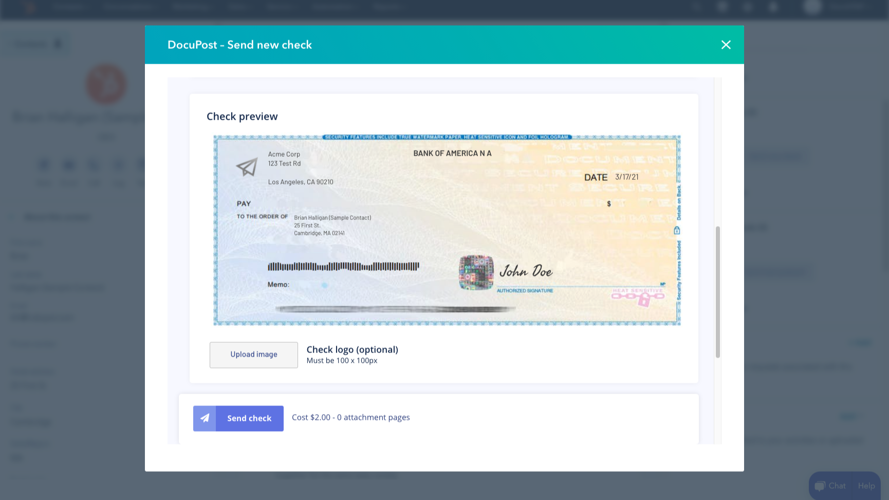 Send professional checks from your CRM